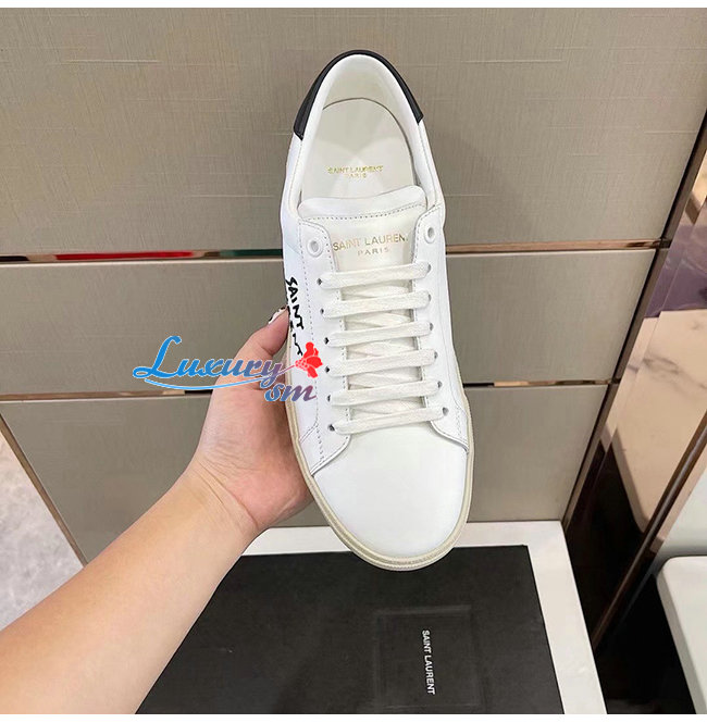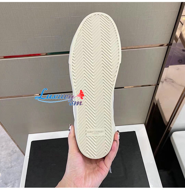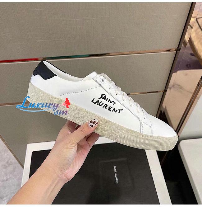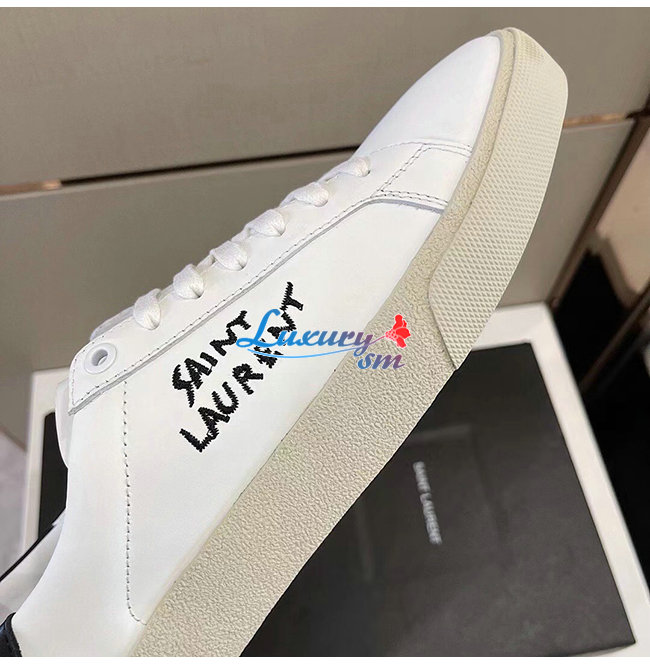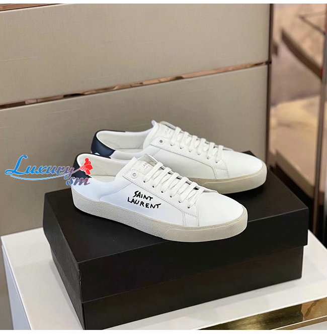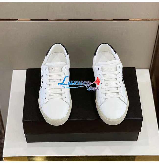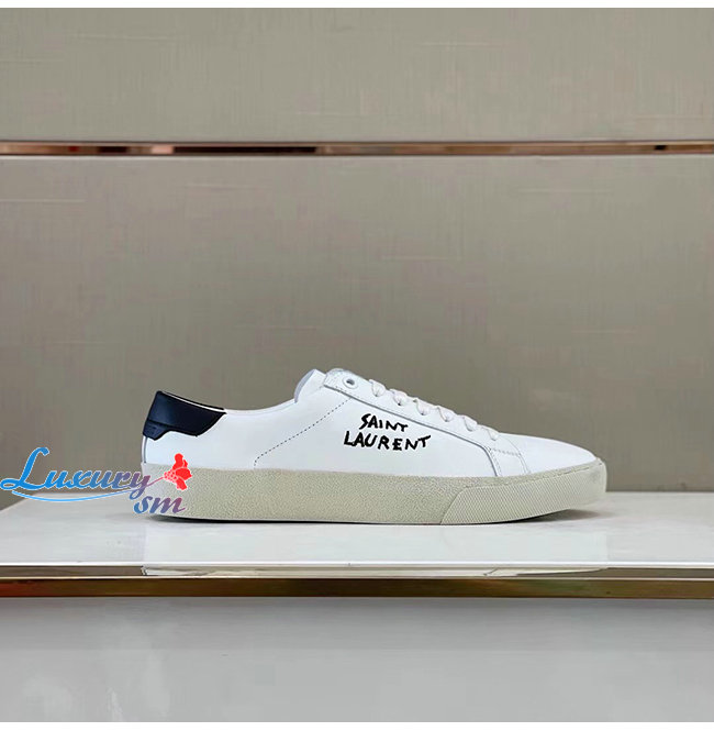 SAINT LAURENT-611106 생 로랑 화이트 코트 클래식 SL/06 자수 장식 스니커즈 남성용