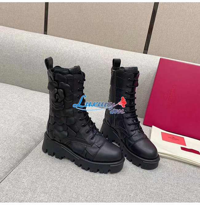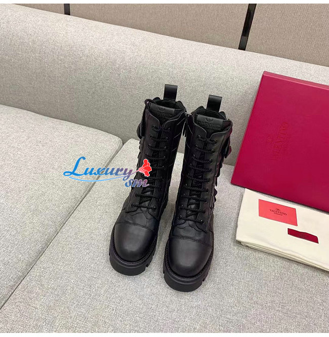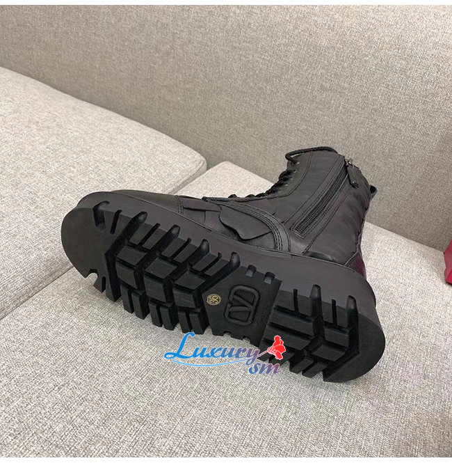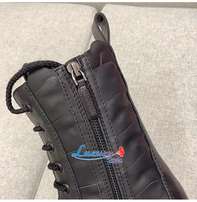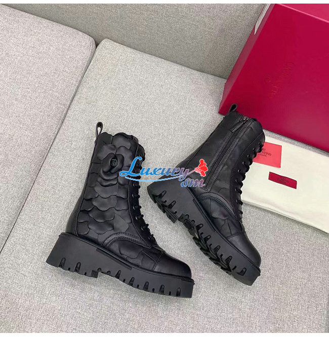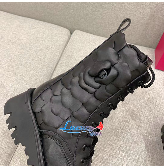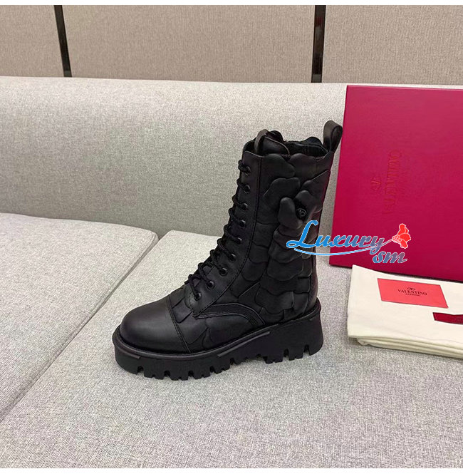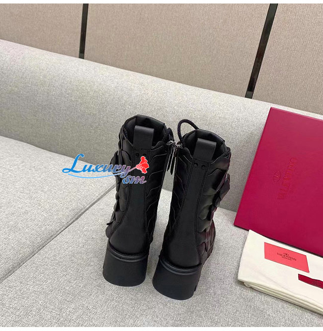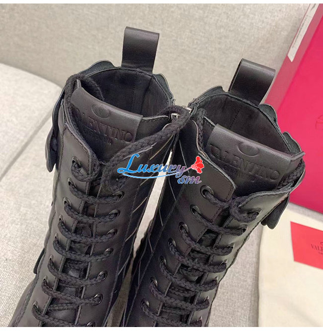 VALENTINO-WW2S0CV 발렌티노 블랙 송아지 가죽 ATELIER SHOES VALENTINO GARAVANI 03 ROSE EDITION 컴뱃 부츠