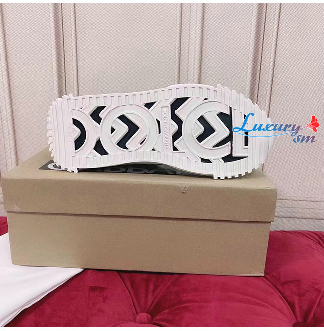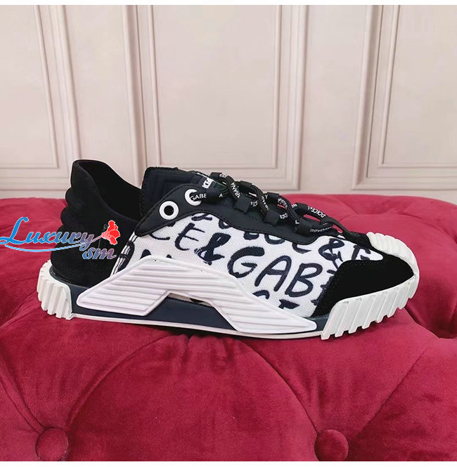 Dolce and Gabbana-돌체 앤 가바나 블랙/화이트 로고 프린트 믹스 소재 NS1 슬립온 스니커즈 여성용