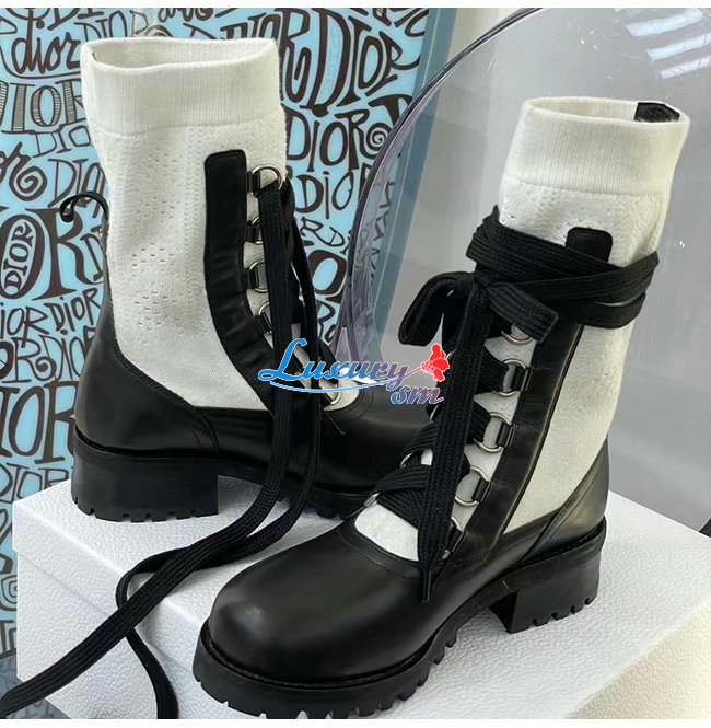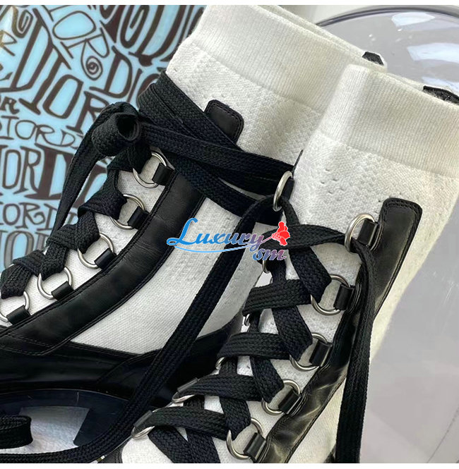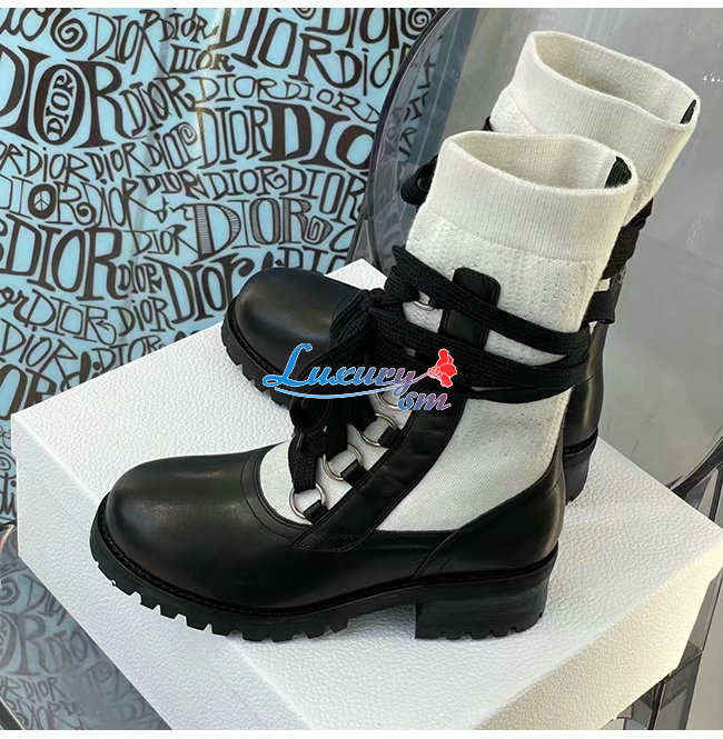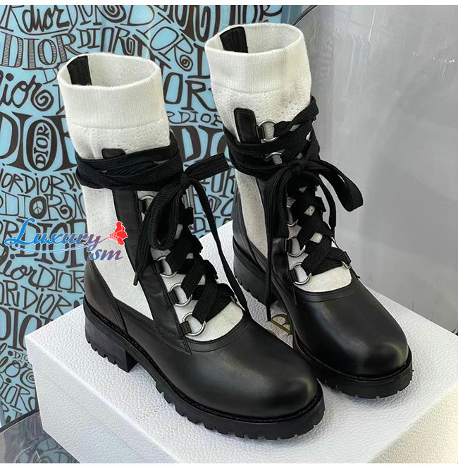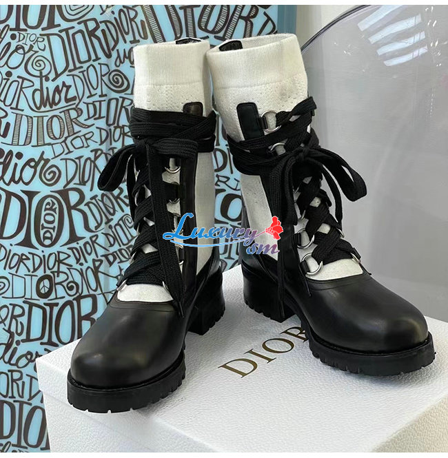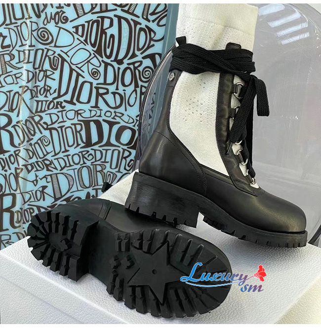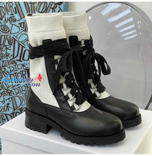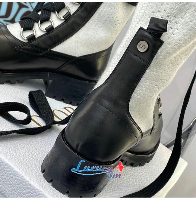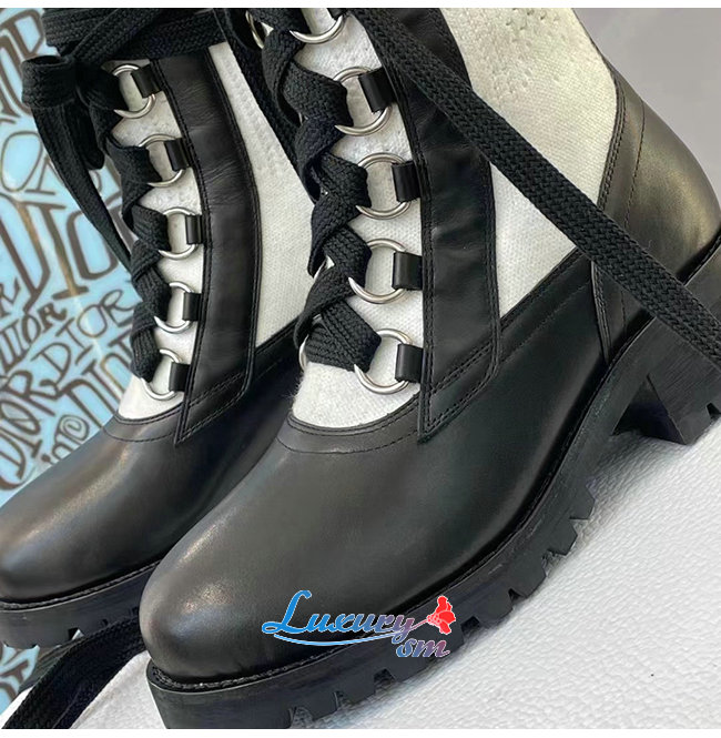DIOR-KDI701 디올 블랙/화이트 카프스킨 코튼 DIORLAND 레이스업 부츠 여성용