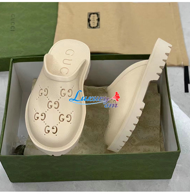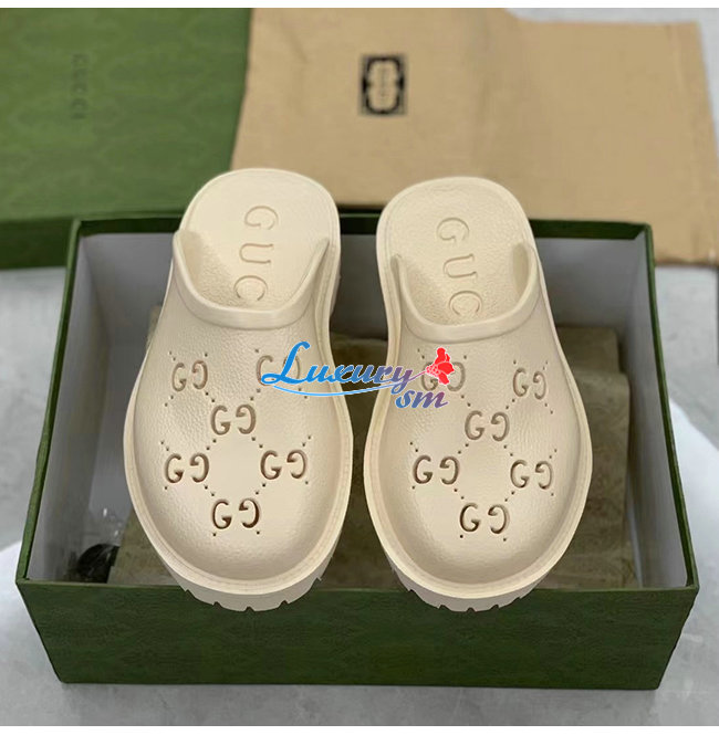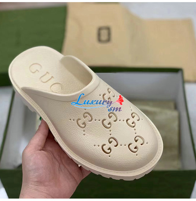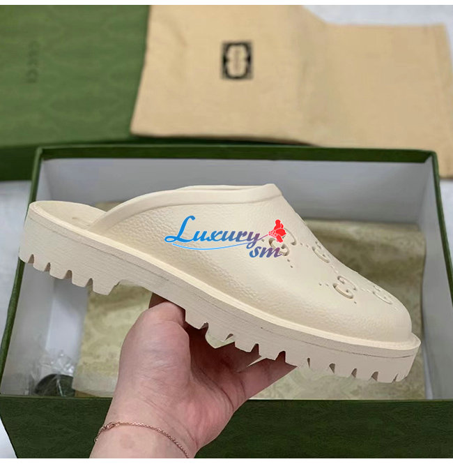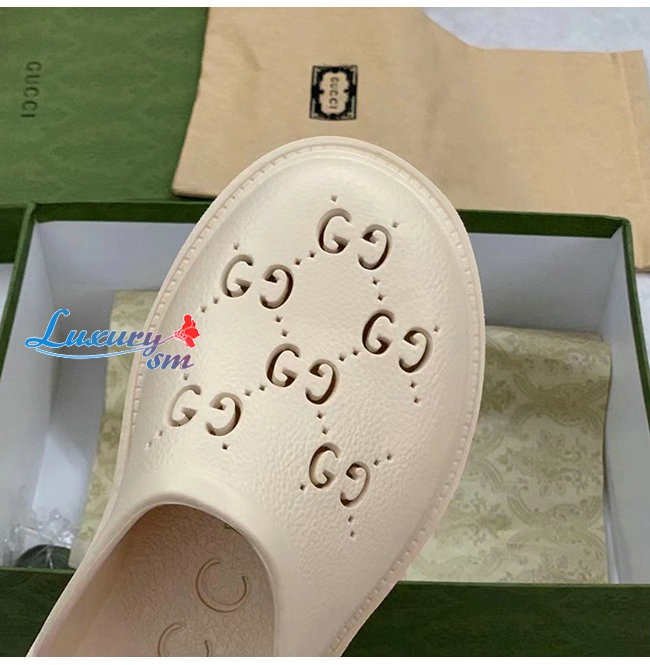 GUCCI-655517 9022 구찌 화이트 천공 GG 러버 슬립온 샌들 남여공용