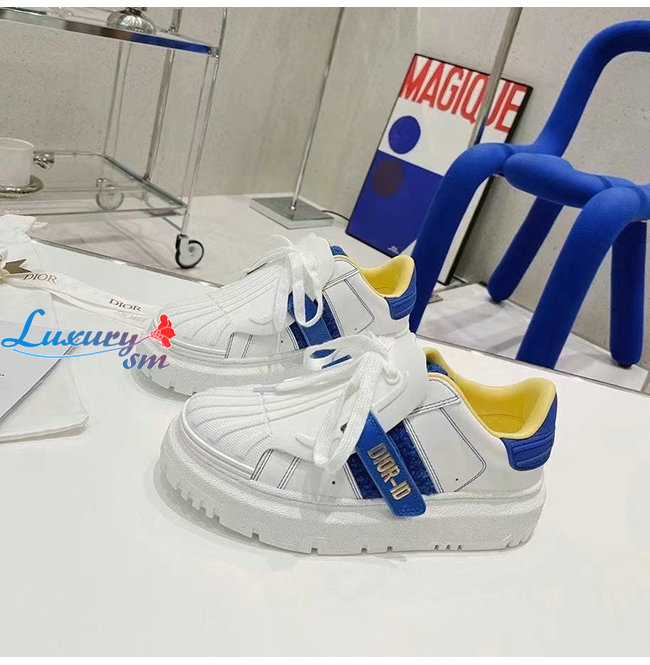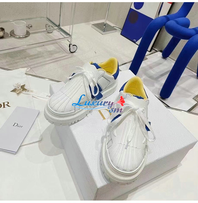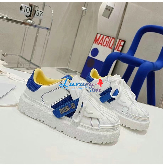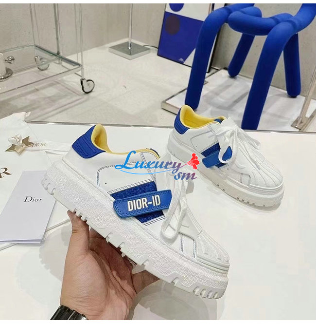 DIOR-KCK323 디올 화이트/블루 송아지 가죽 DIOR-ID 스니커즈 여성용