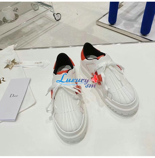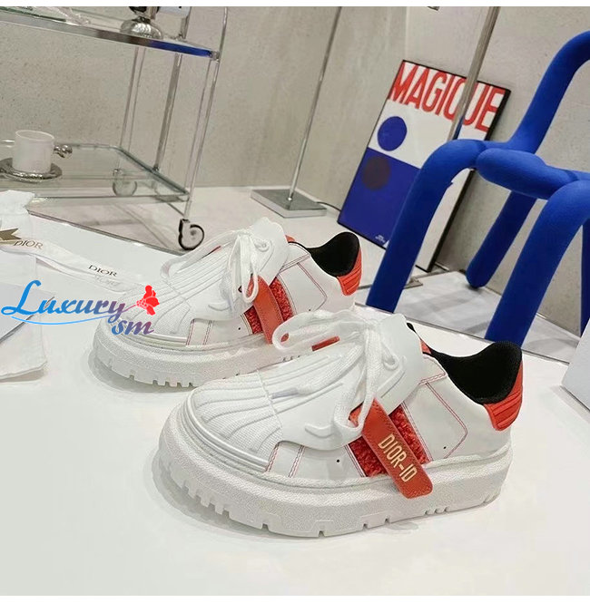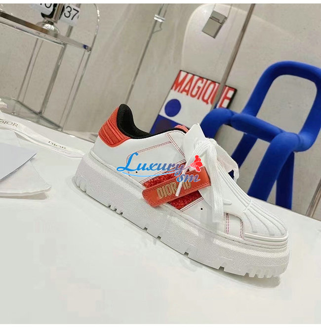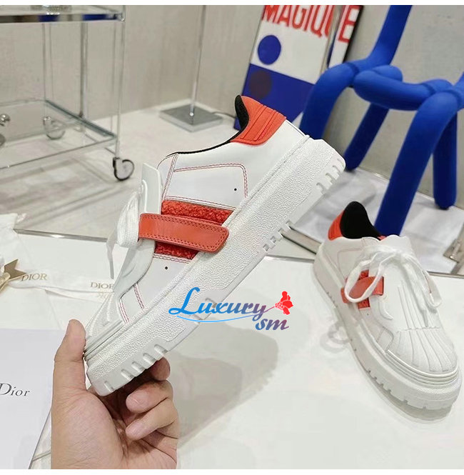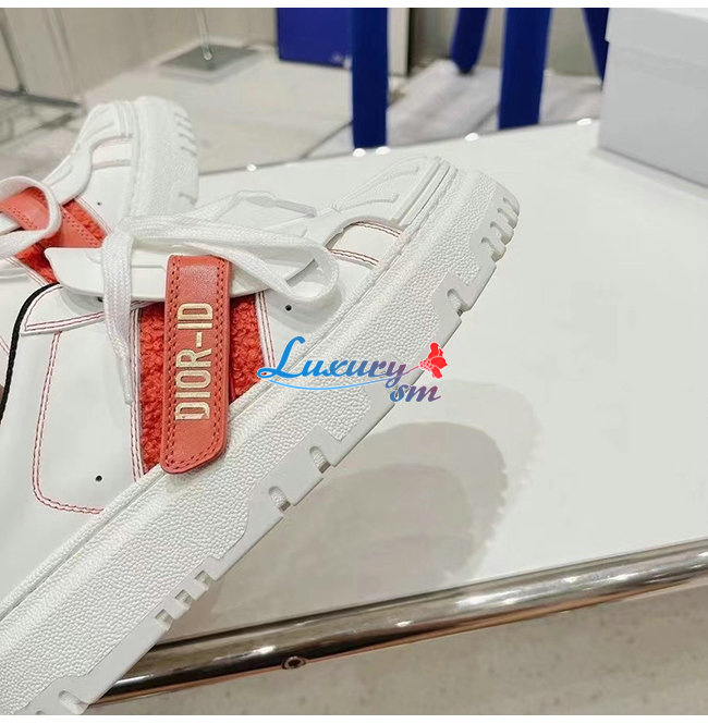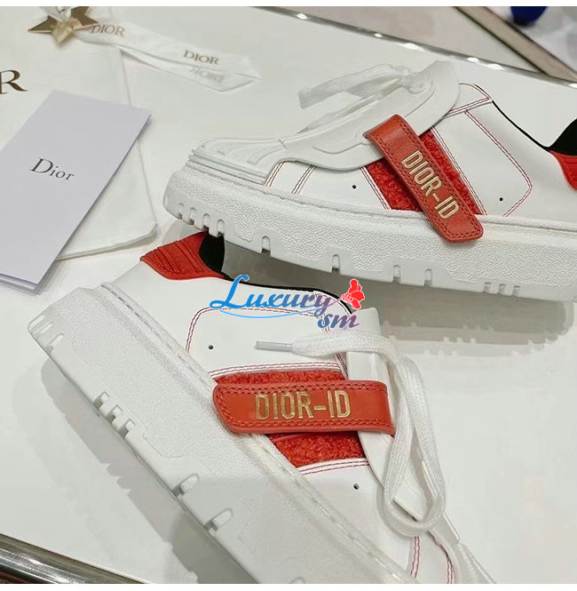 DIOR-KCK323 디올 화이트/레드 송아지 가죽 DIOR-ID 스니커즈 여성용