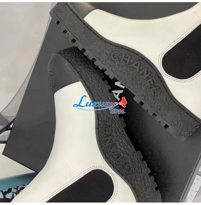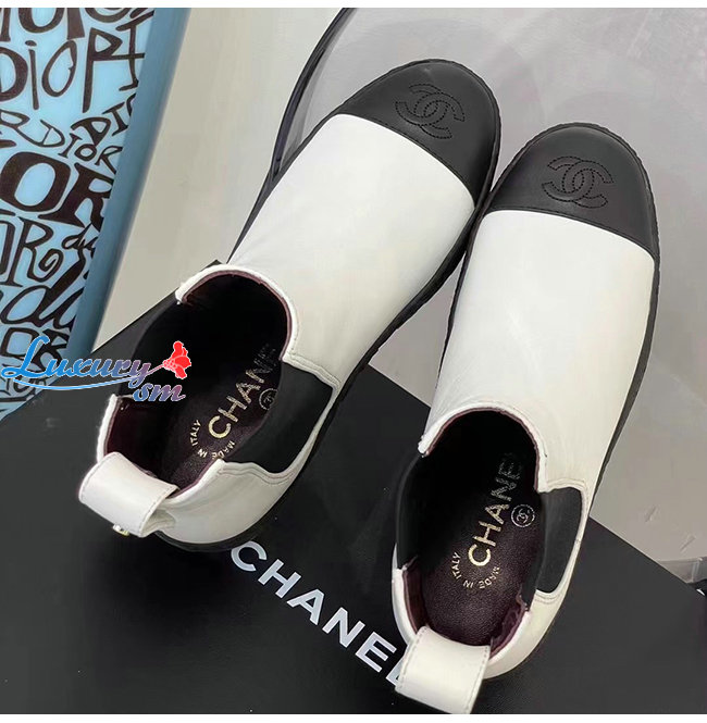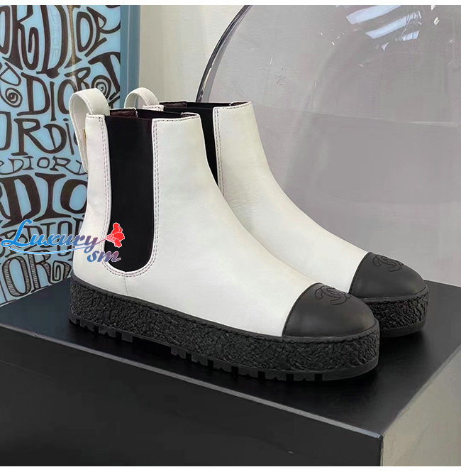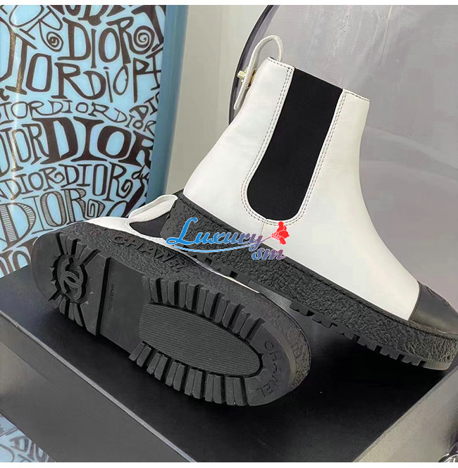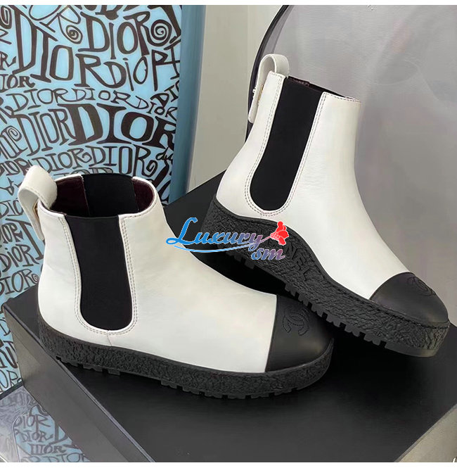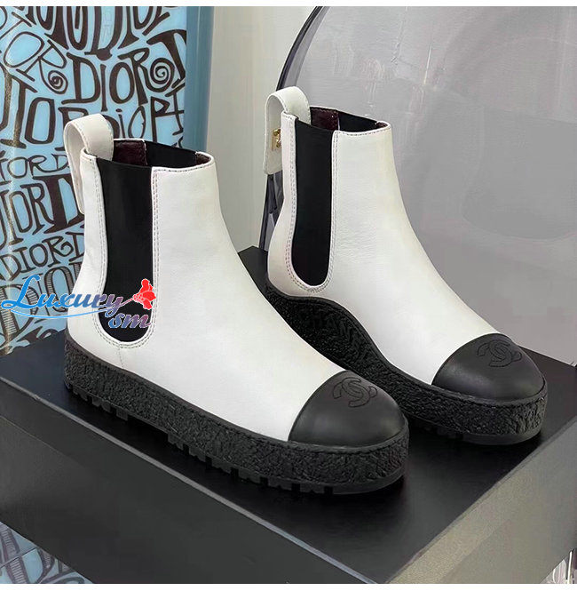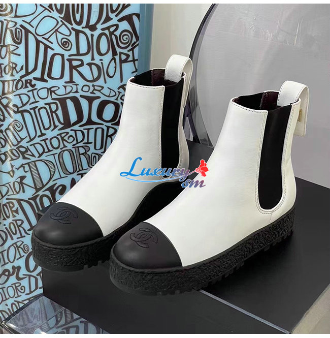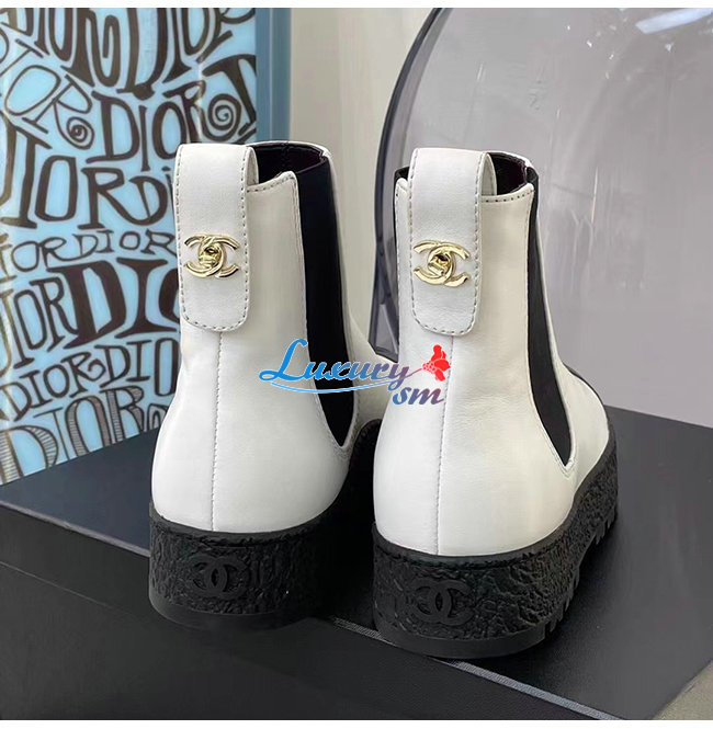 CHANEL-G37927 샤넬 화이트 카프스킨 쇼트 부츠 여성용