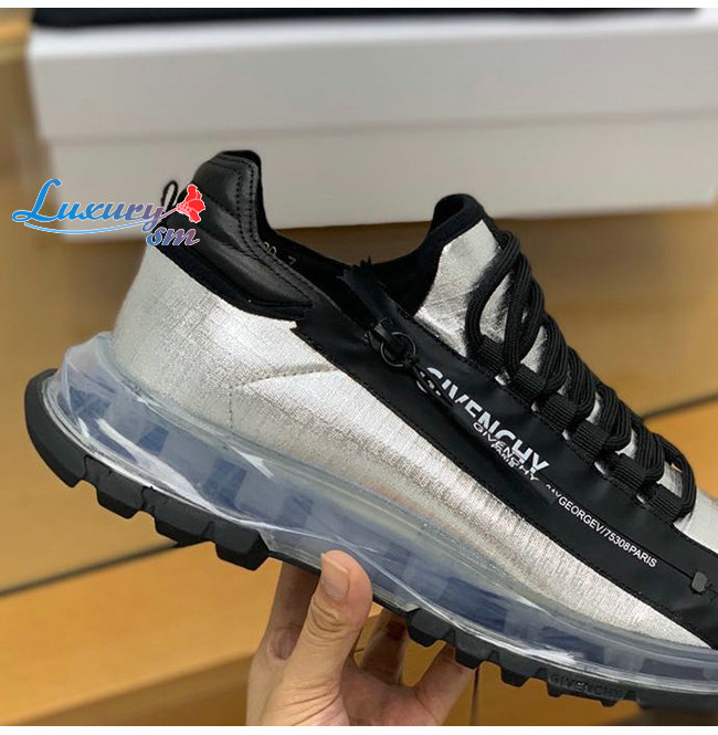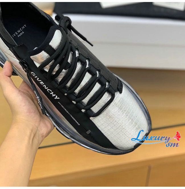 GIVENCHY-BH003M 지방시 실버/블랙 스펙터 지퍼 장식 립스탑 로우탑 러닝 슈즈 남성용