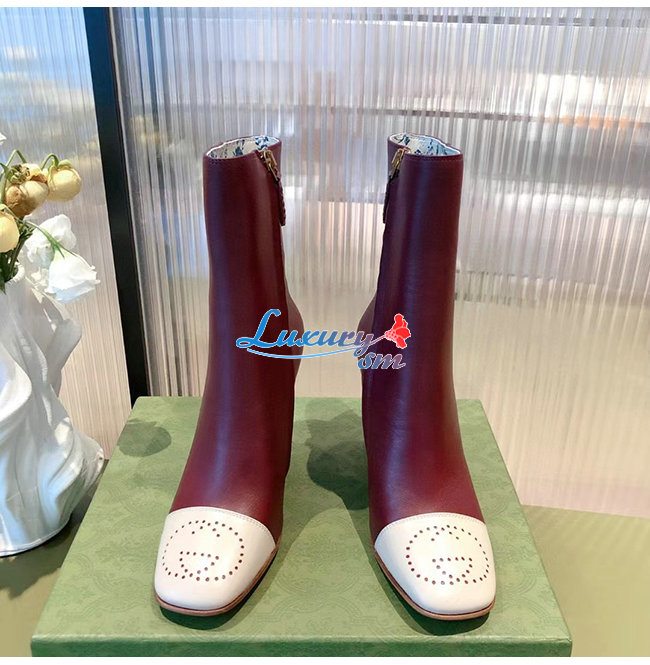 GUCCI-658946 9590 구찌 레드 가죽 인터로킹 G 부츠