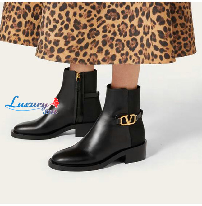 VALENTINO-WW2S0CT 발렌티노 블랙 송아지 가죽 VLOGO SIGNATURE 앵클 부츠