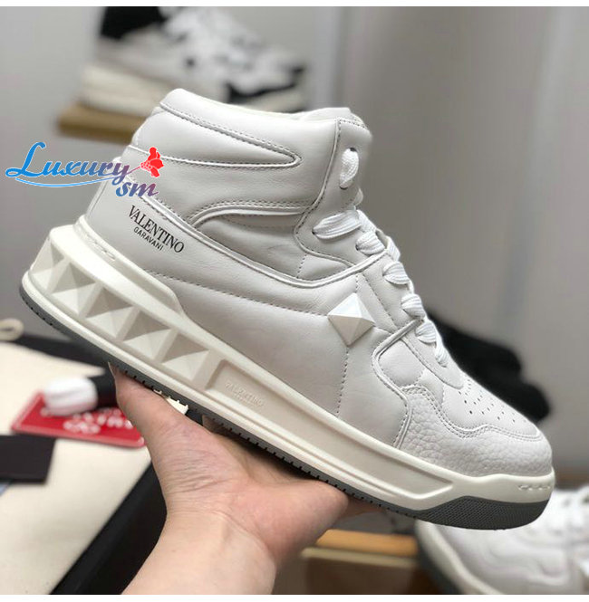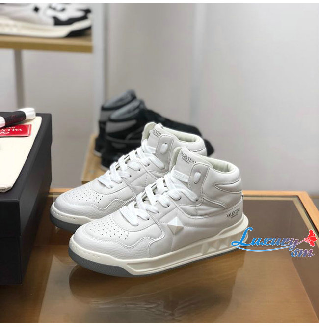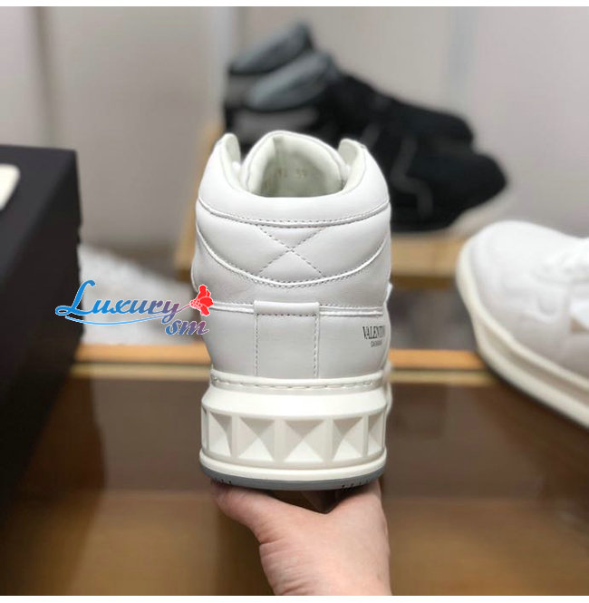 VALENTINO-XY2S0E63 발렌티노 화이트 나파 가죽 ONE STUD 미드탑 스니커즈 남여공용