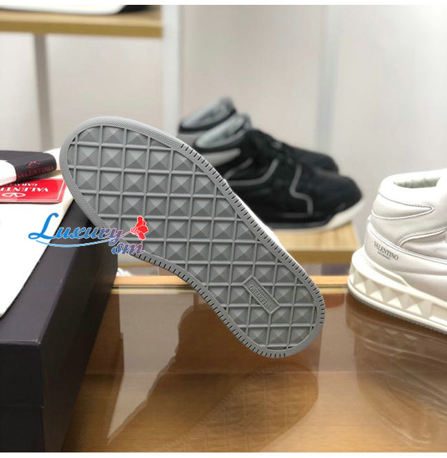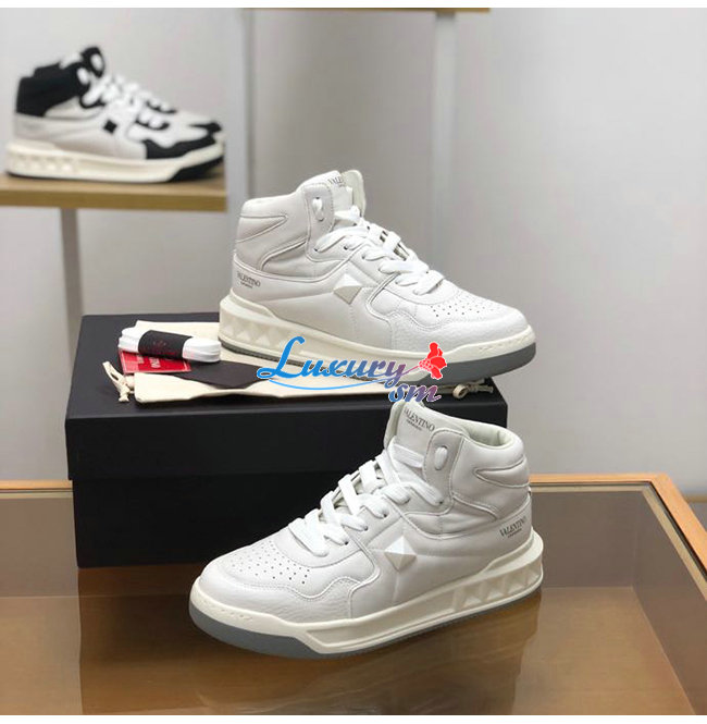 VALENTINO-XY2S0E63 발렌티노 화이트/블랙 나파 가죽 ONE STUD 미드탑 스니커즈 남여공용 가격 : 280,000원