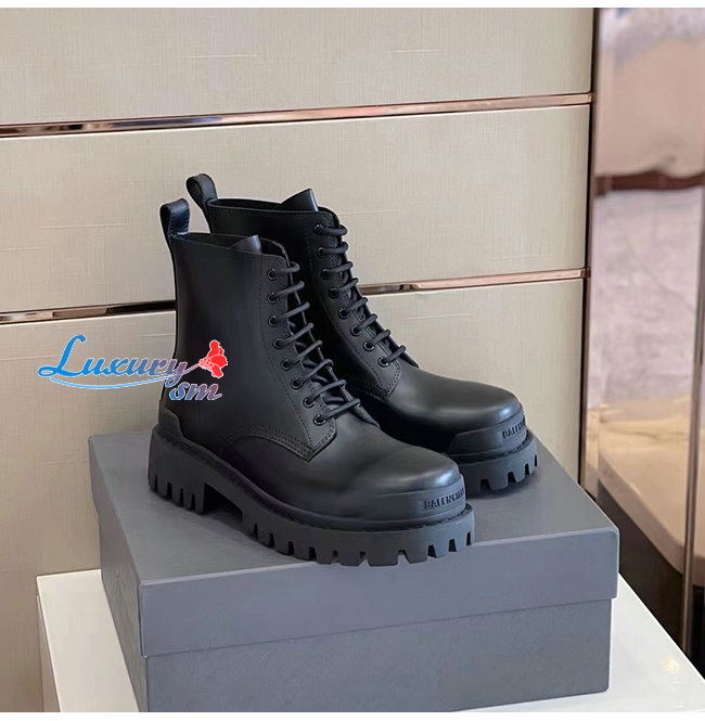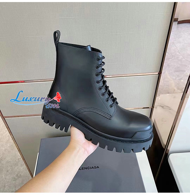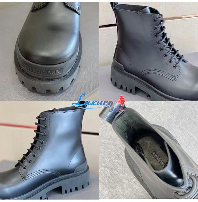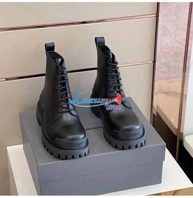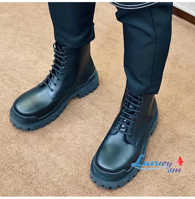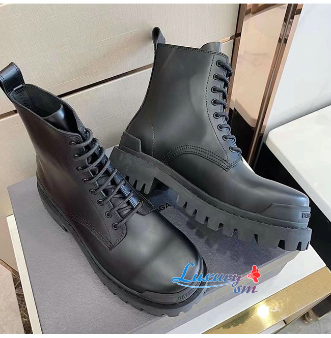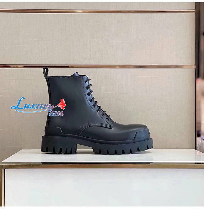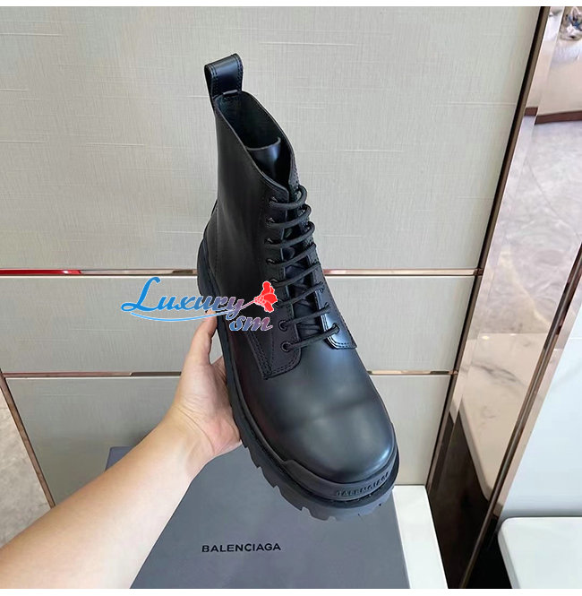 BALENCIAGA-589338 발렌시아가 블랙 카프스킨 STRIKE LACE-UP 부츠 남성용