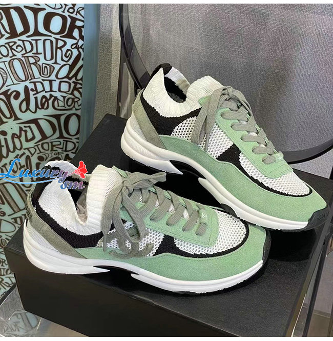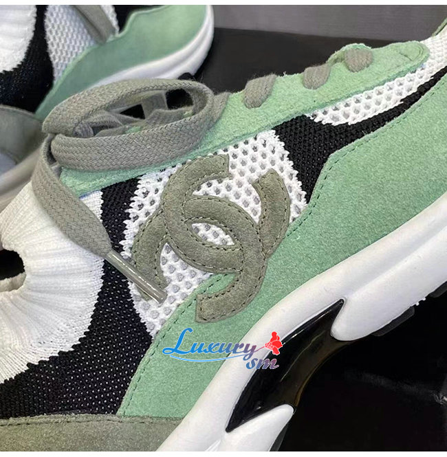 CHANEL-G38750 샤넬 그린 스웨이드 카프스킨 스니커즈 여성용