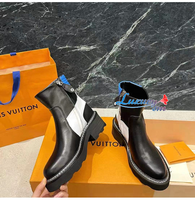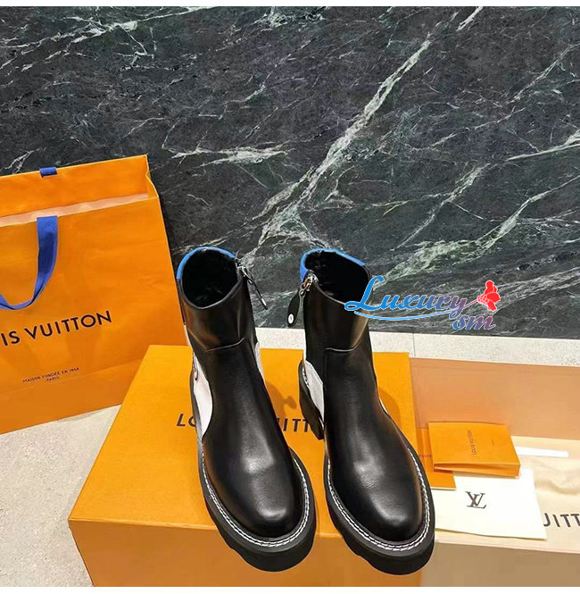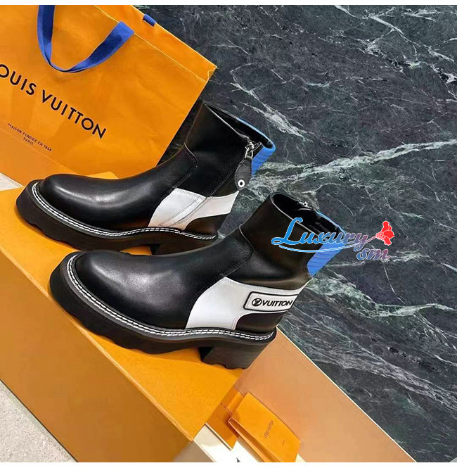 LOUIS VUITTON-1A9OBR 루이비통 블랙/블루 송아지 가죽 LV 보부르 앵클 부츠