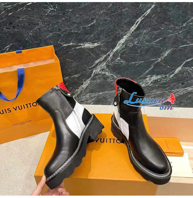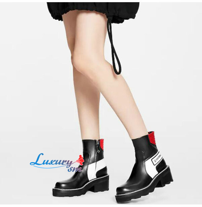 LOUIS VUITTON-1A9OCG 루이비통 블랙/레드 송아지 가죽 LV 보부르 앵클 부츠