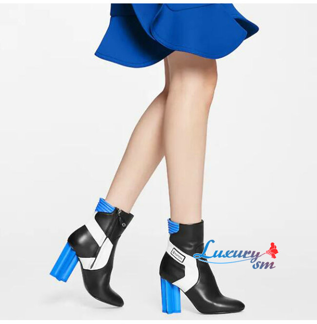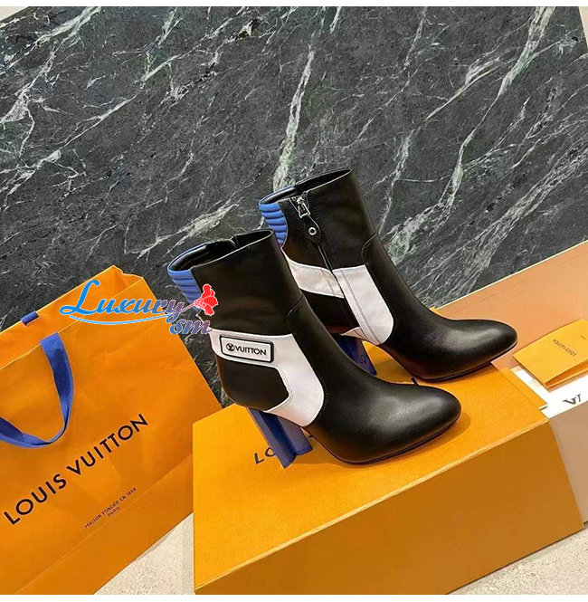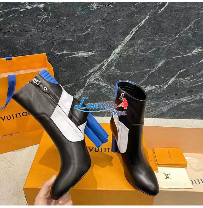 LOUIS VUITTON-1A9O9K 루이비통 블랙/블루 송아지 가죽 SILHOUETTE 앵클 부츠