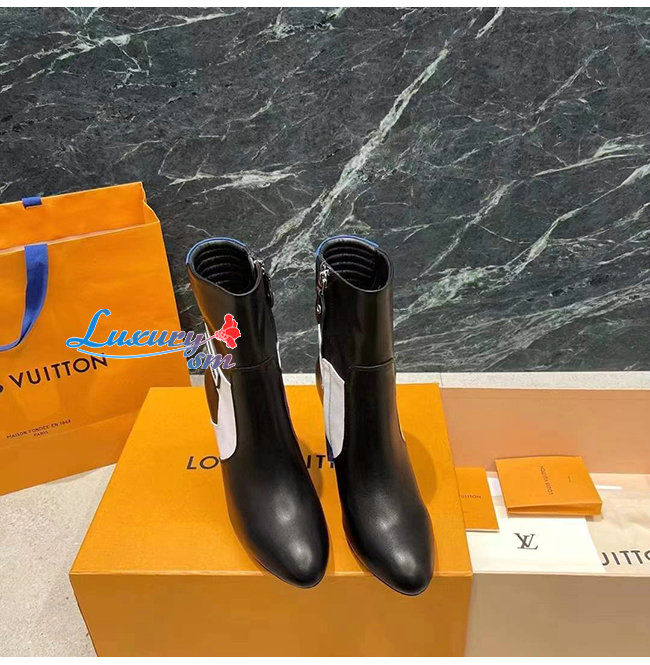 LOUIS VUITTON-1A9OA0 루이비통 블랙/핑크 송아지 가죽 SILHOUETTE 앵클 부츠