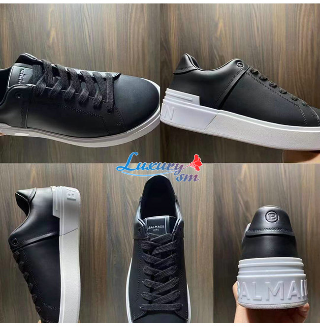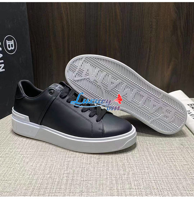 BALMAIN-VM1C244 발망 블랙 카프스킨 B-Court 스니커즈 남성용
