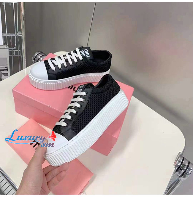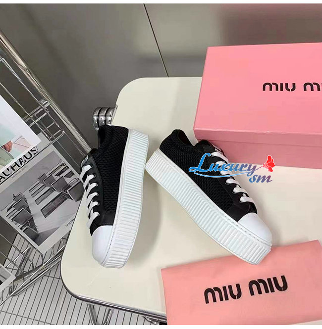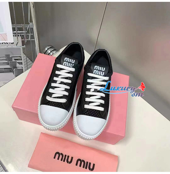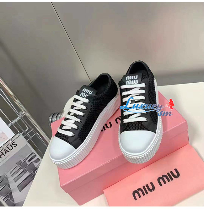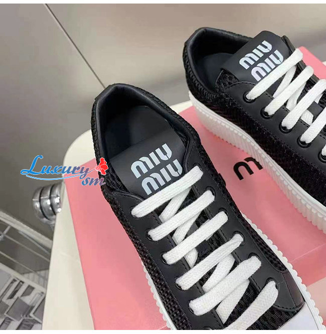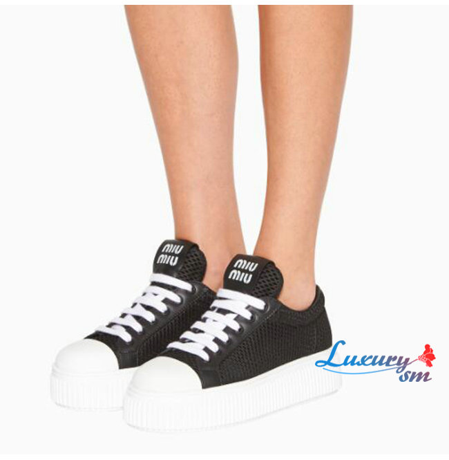 MIUMIU-5E726D 미우미우 블랙 메쉬 플랫폼 스니커즈 여성용