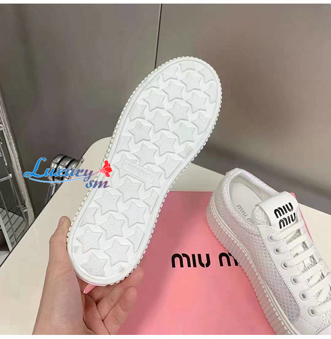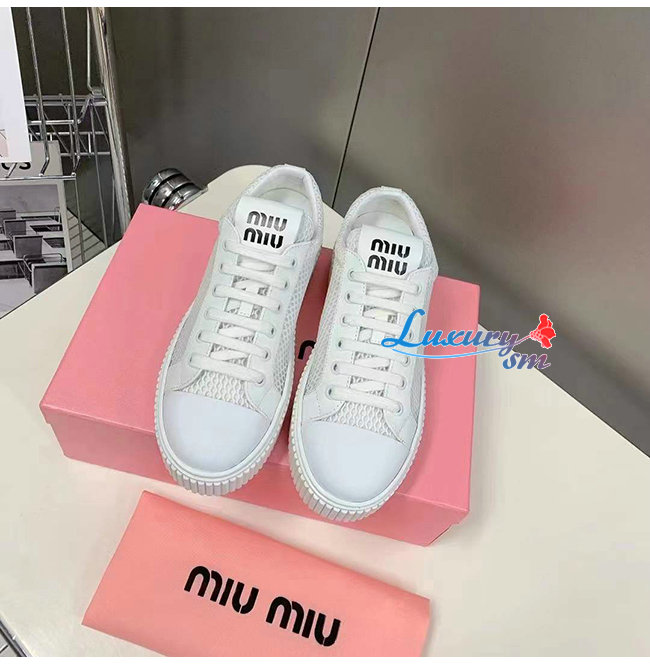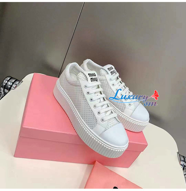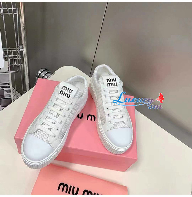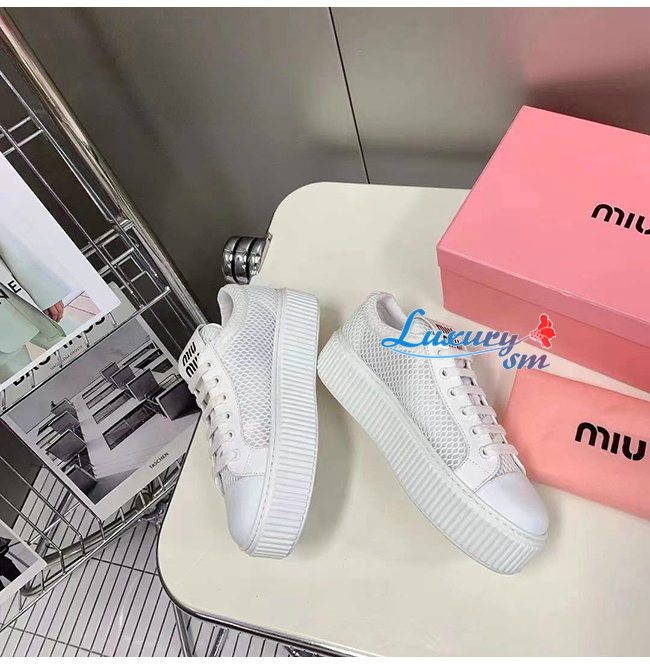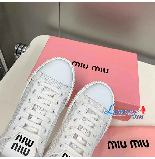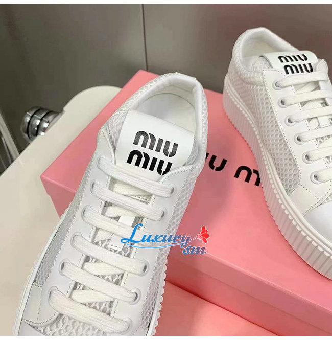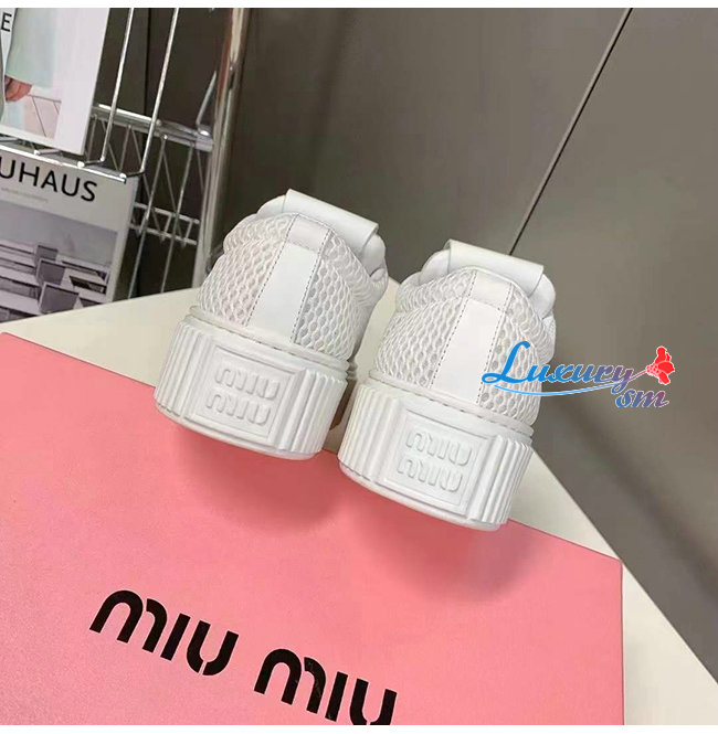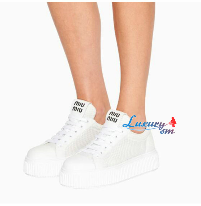 MIUMIU-5E726D 미우미우 화이트 메쉬 플랫폼 스니커즈 여성용