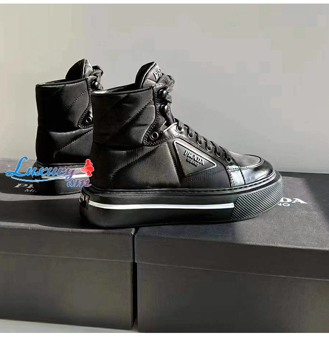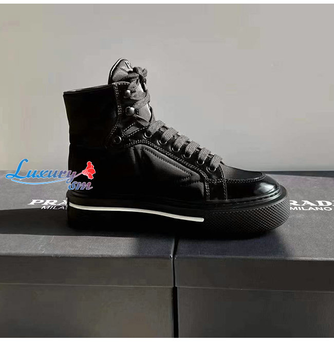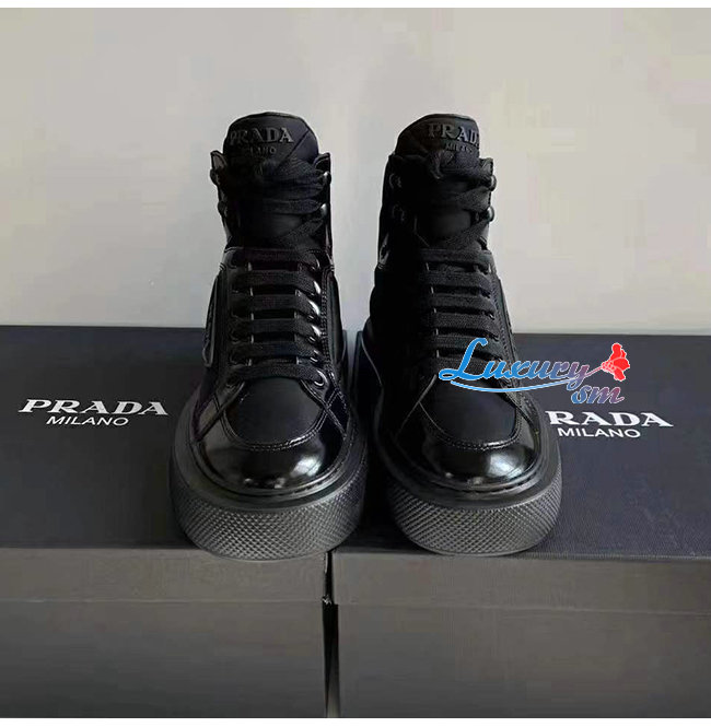 PRADA-2TG183 프라다 블랙 매크로 리나일론 하이탑 스니커즈