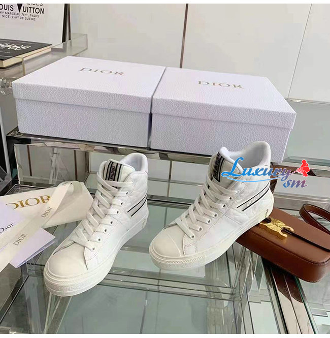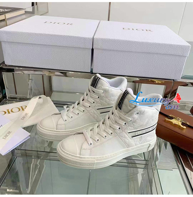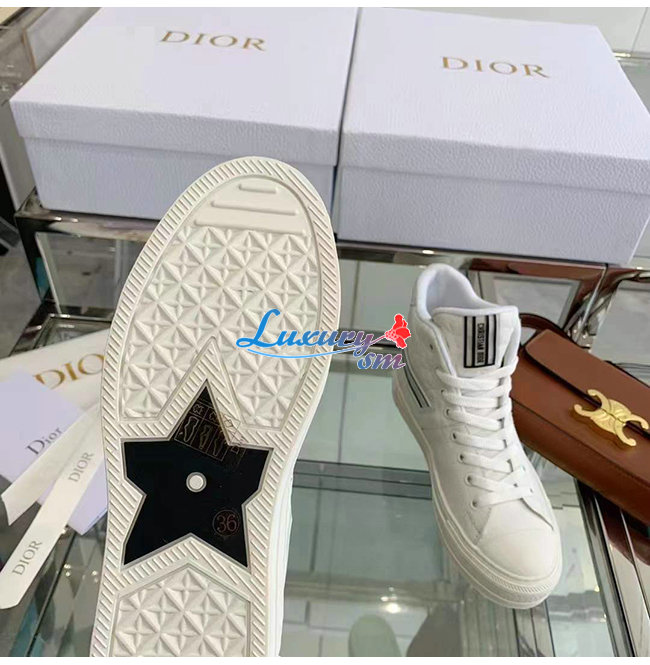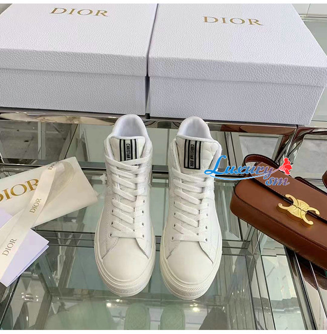 DIOR-KCK336 디올 화이트 엠보싱 송아지 가죽 WALK N DIOR STAR 스니커즈 여성용