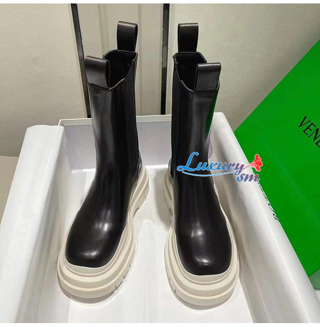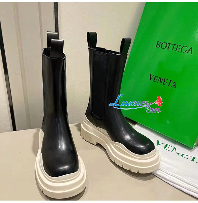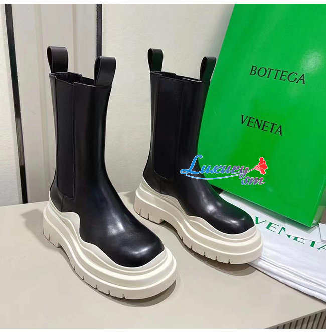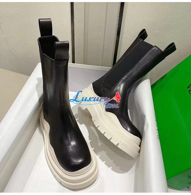 BOTTEGA VENETA-630297 보테가 베네타 버터/블랙 송아지 가죽 BV 타이어 부츠 여성용
