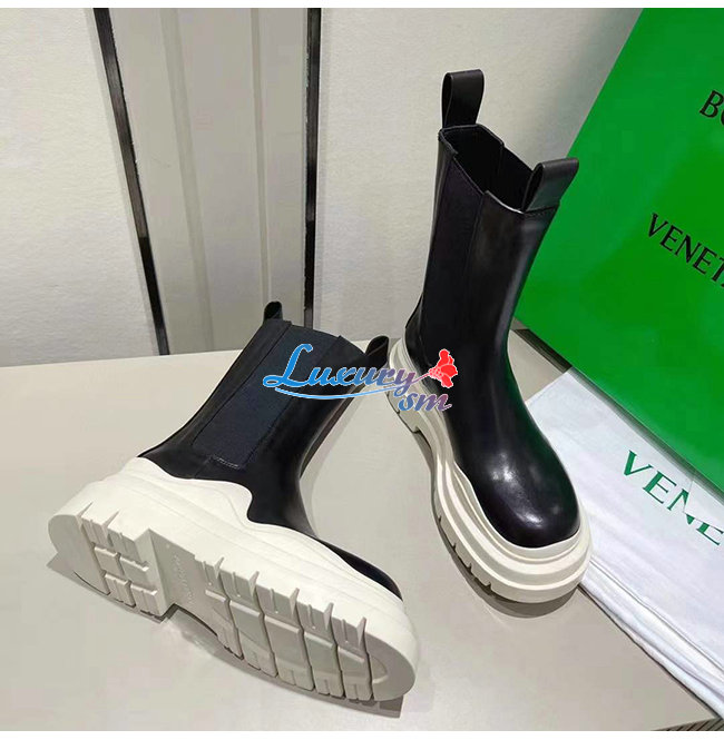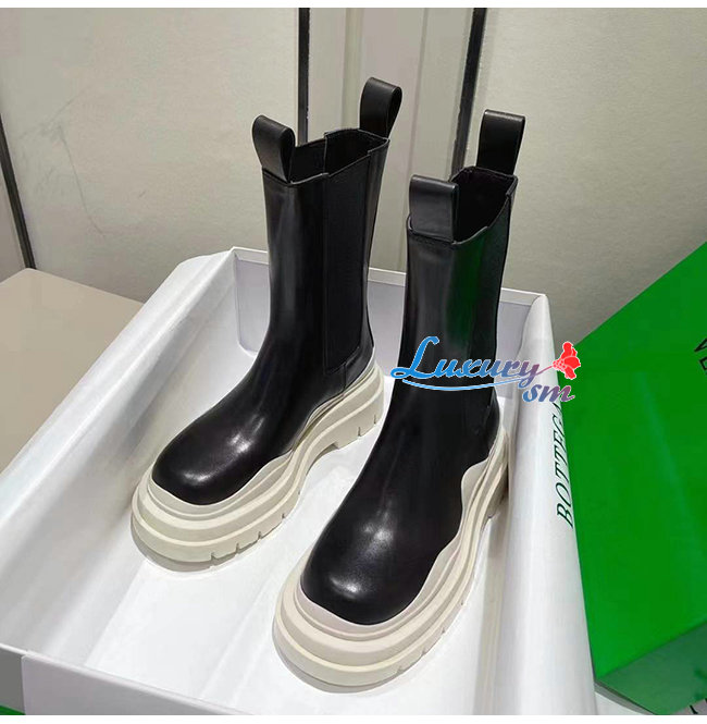 BOTTEGA VENETA-630297 보테가 베네타 블랙/씨 솔트 송아지 가죽 타이어 첼시 부츠