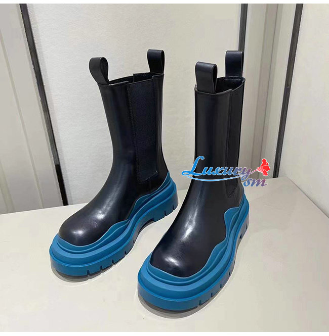 BOTTEGA VENETA-630297 보테가 베네타 블랙/씨 솔트 송아지 가죽 타이어 첼시 부츠