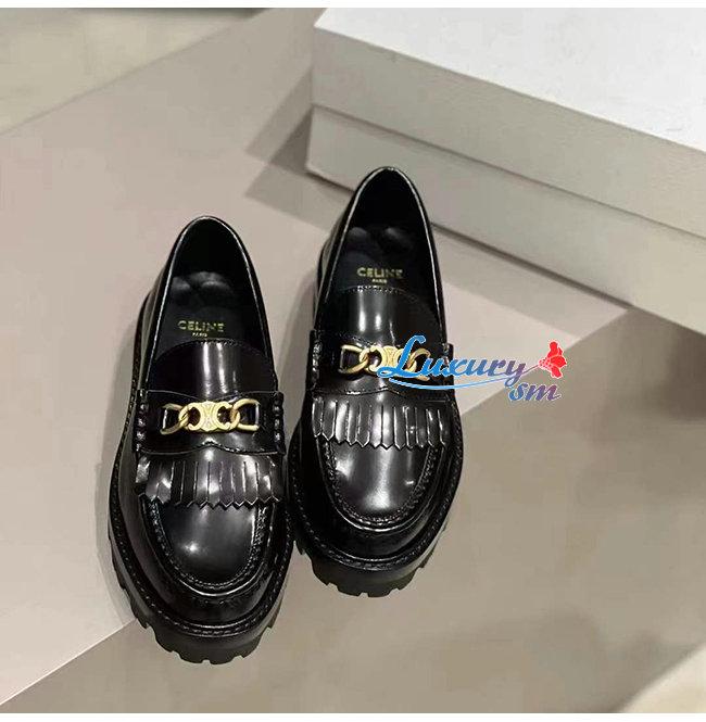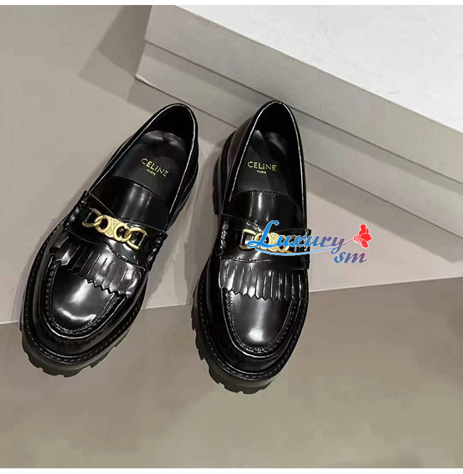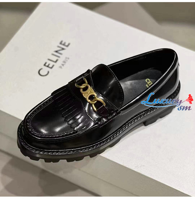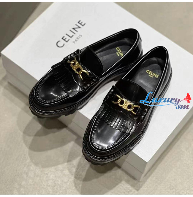 CELINE-344893 셀린느 블랙 소가죽 트리오페 체인 MARGARET 로퍼 여성용
