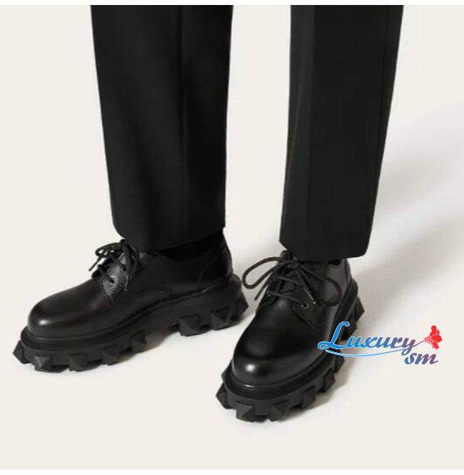 VALENTI**-XY2S0F 발렌티노 블랙 트랙스터드 더비 남성용