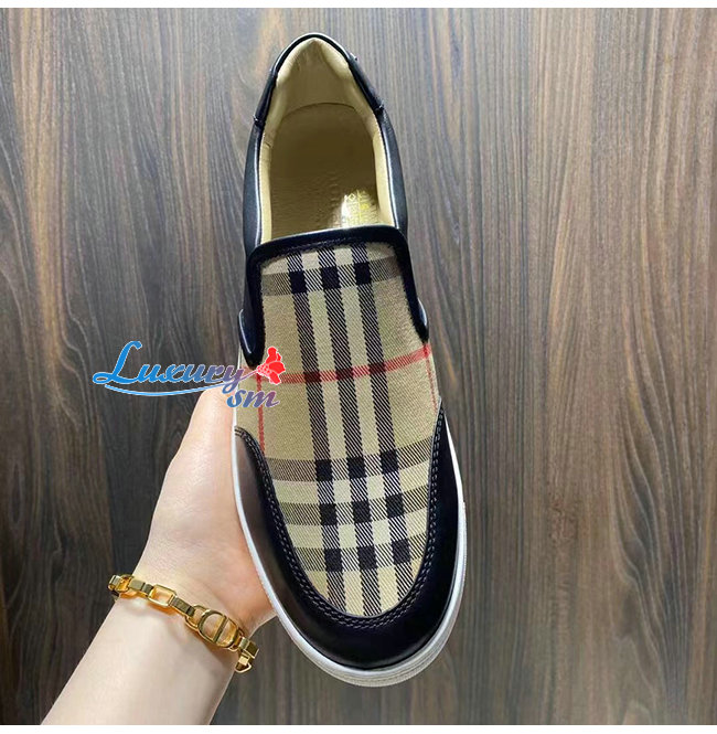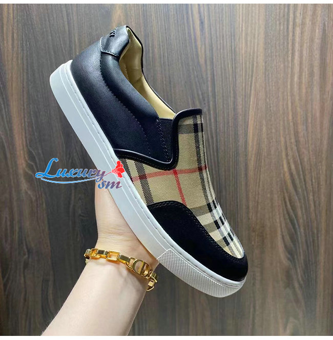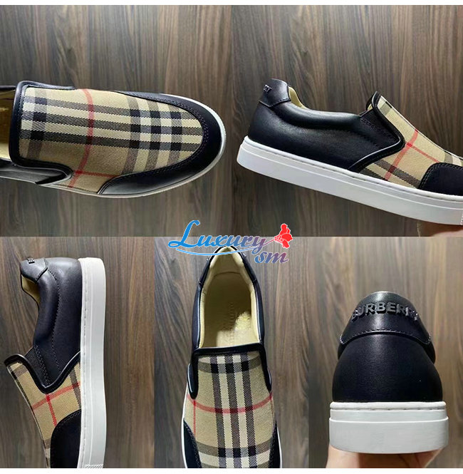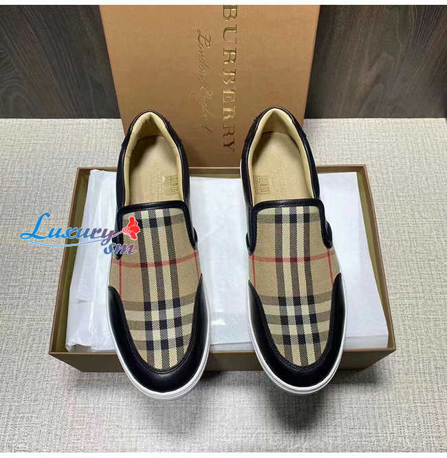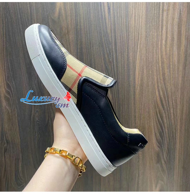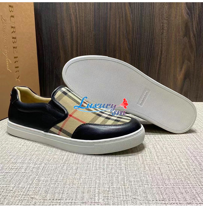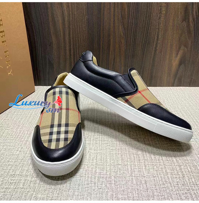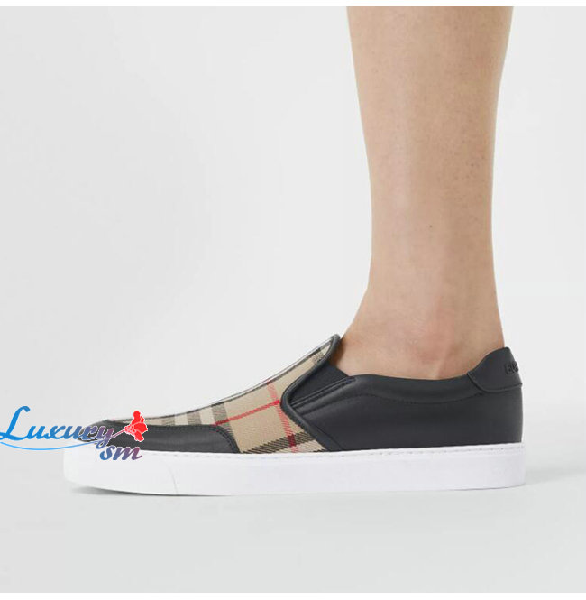 BURBER**-80432131 버버리 블랙 레더 빈티지 체크 슬립온 스니커즈