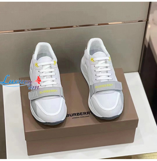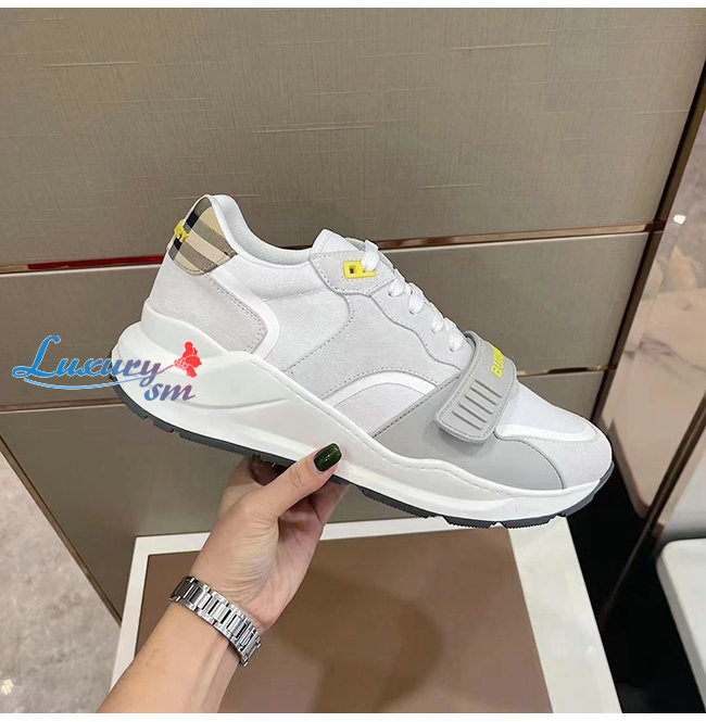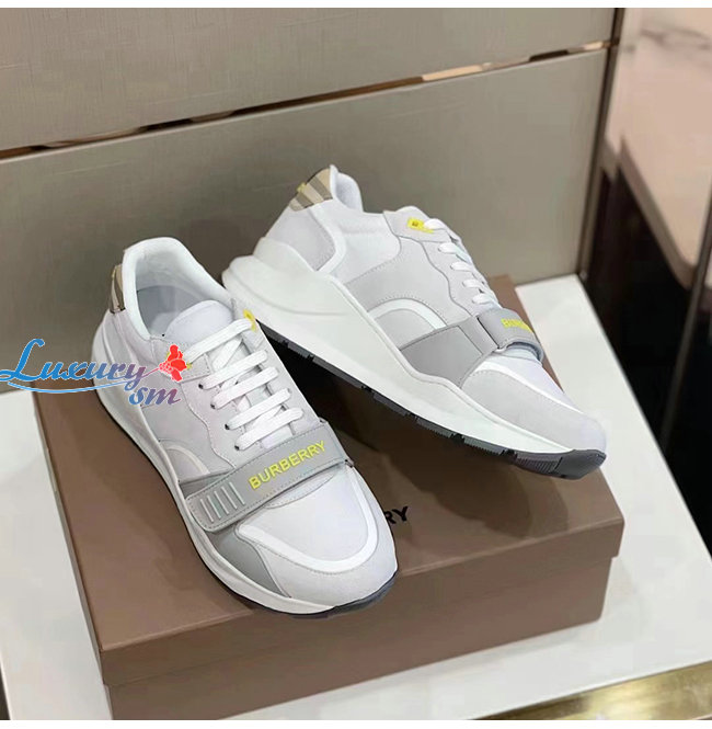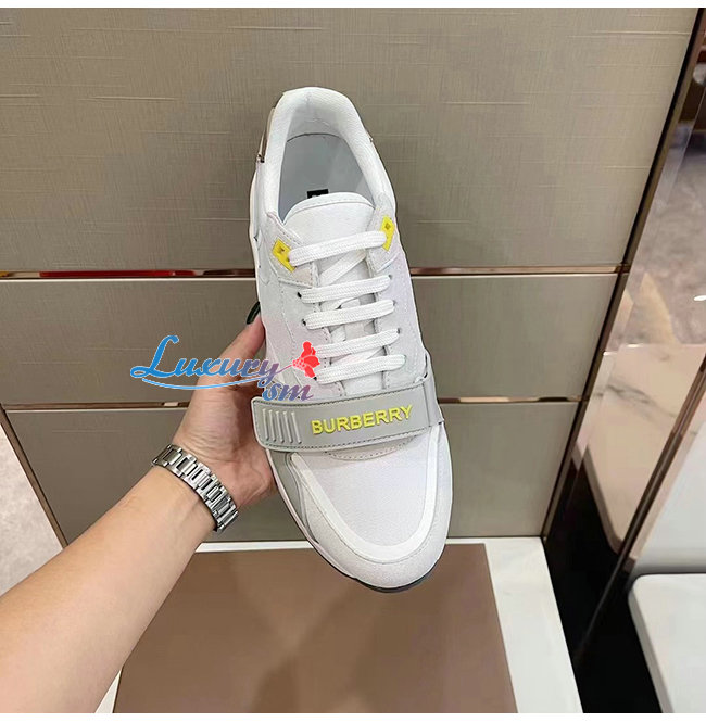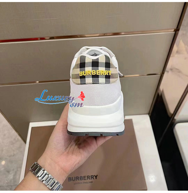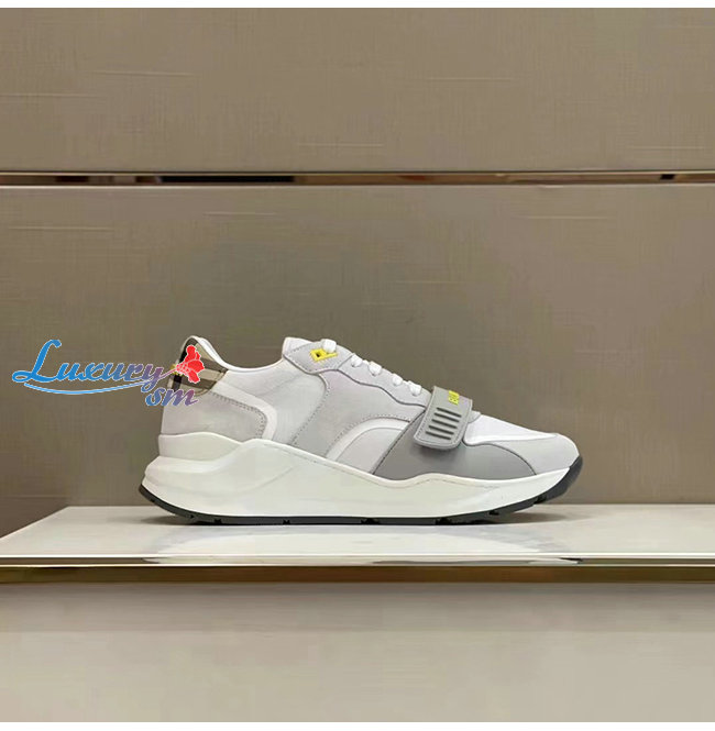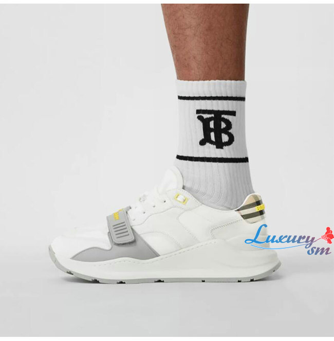 BURBER**-80372581 버버리 화이트 스웨이드 빈티지 체크 레더 스니커즈