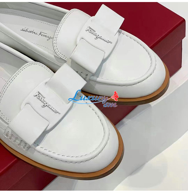 Ferraga**-01C952 페라가모 화이트 라미네이트 레더 비바 로퍼
