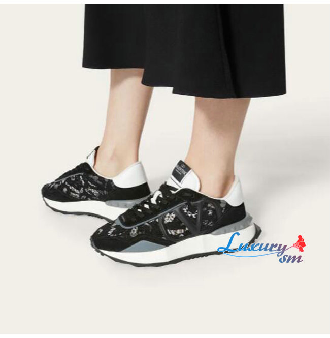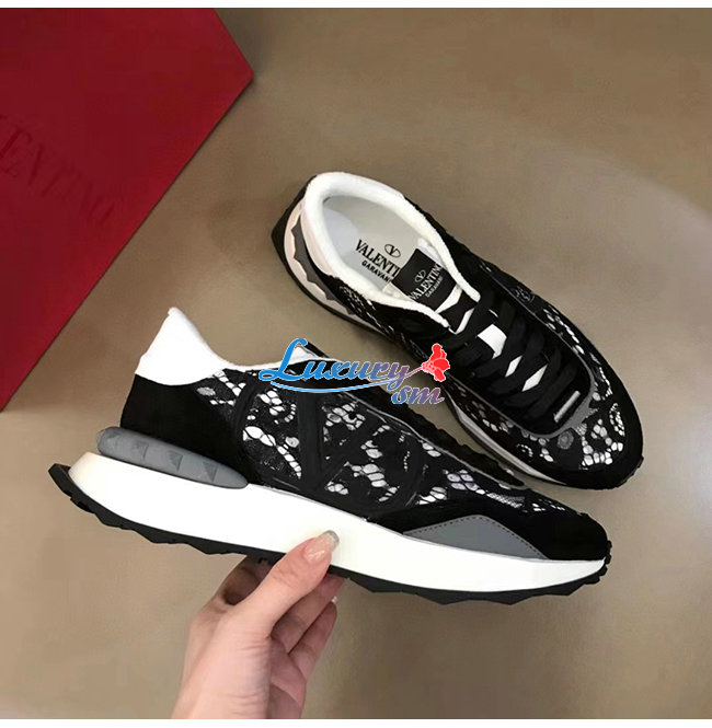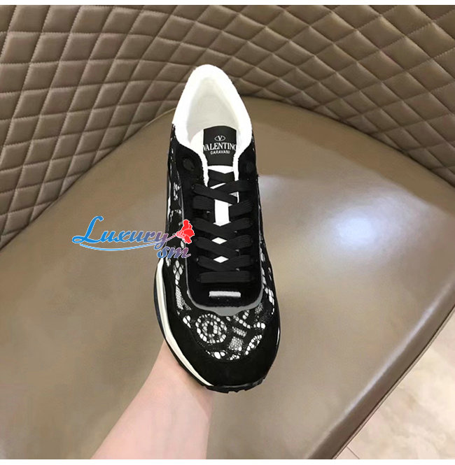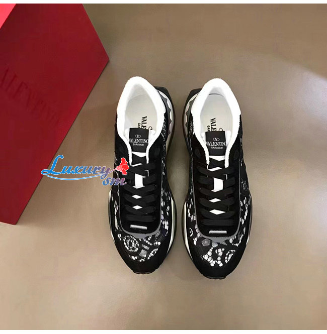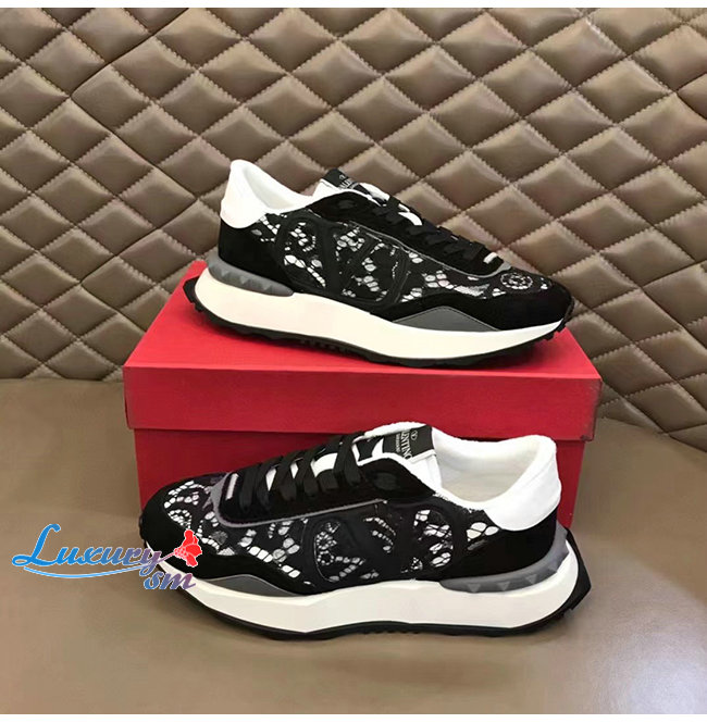 VALENTI**-1W2S0DY 발렌티노 블랙 레이스 메쉬 레이스러너 스니커즈 남여공용