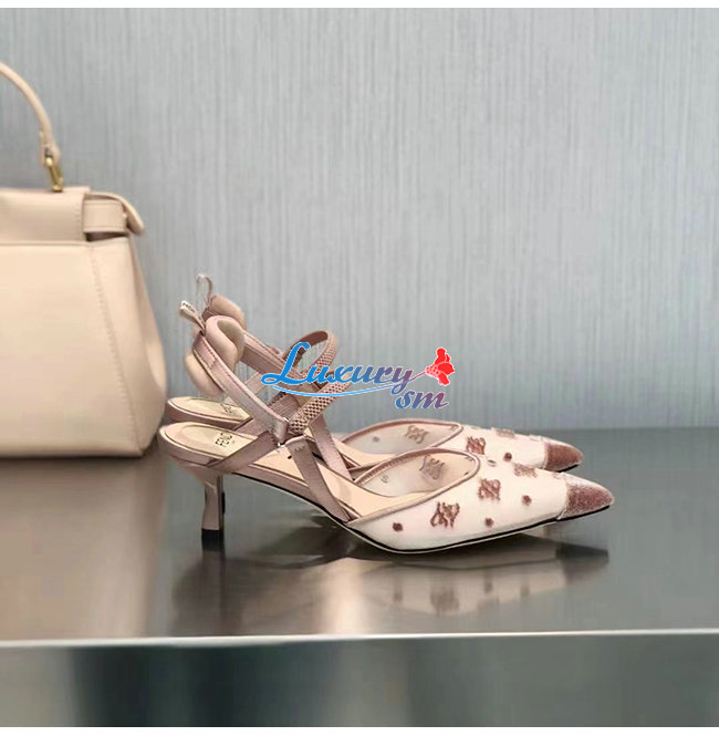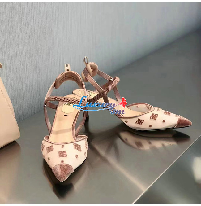 FEND*-8J8243 펜디 베이지 콜리브리 라이트 미디엄힐 슬링백