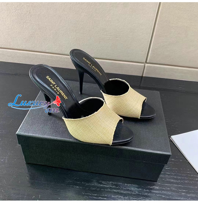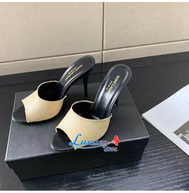 SAINT LAURE**-687675 생 로랑 아이보리 라피아 LA 16 뮬