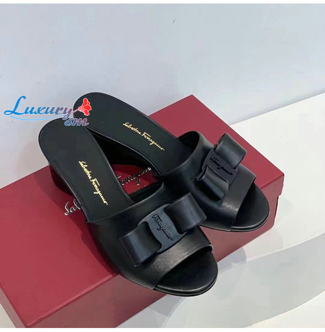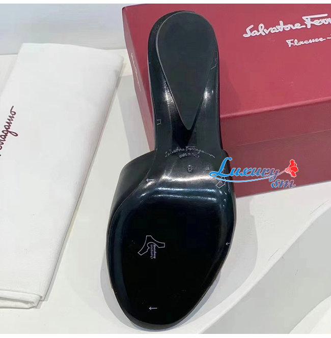 Ferraga**-01C145 페라가모 블랙 나파 가죽 비바 샌들