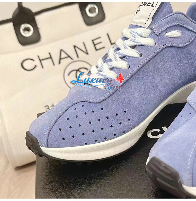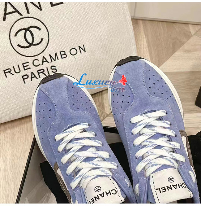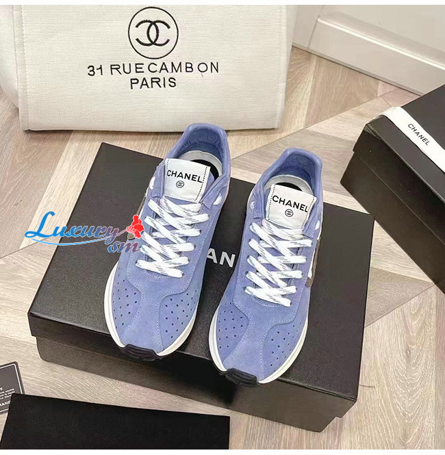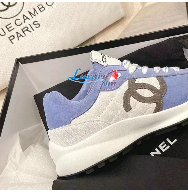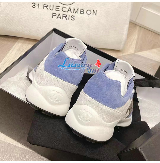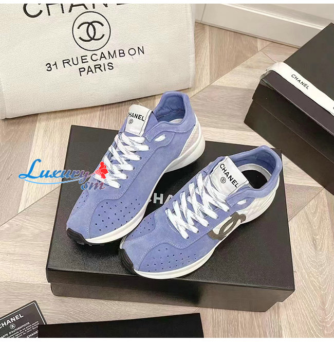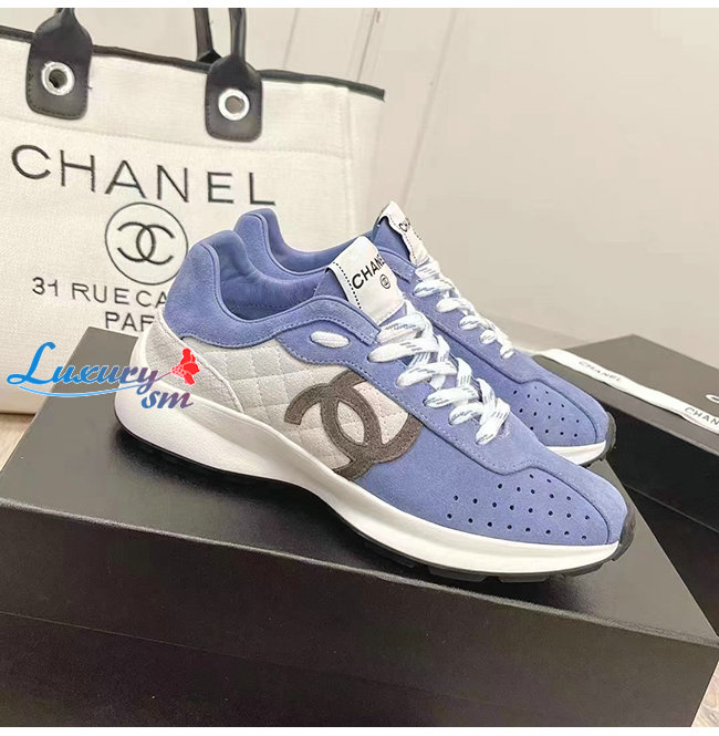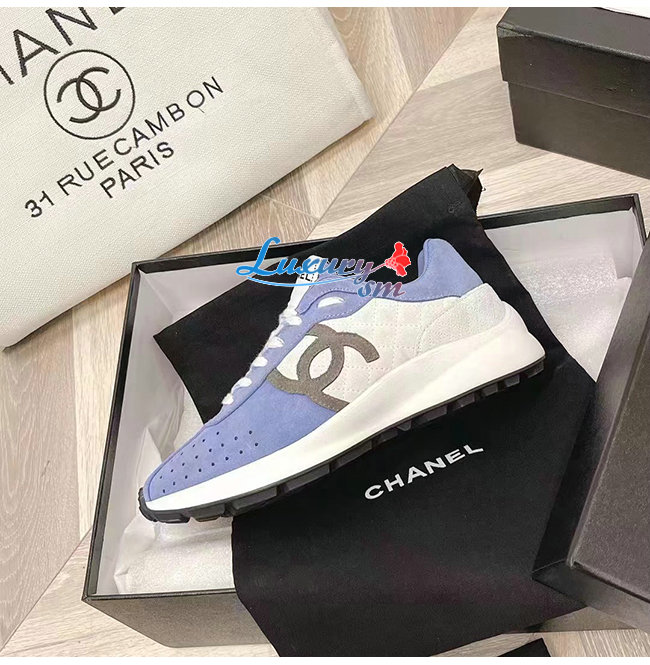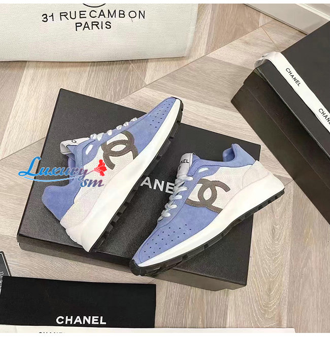 CHANE*-G39074 샤넬 블루/화이트 스웨이드 키드스킨 스니커즈 여성용