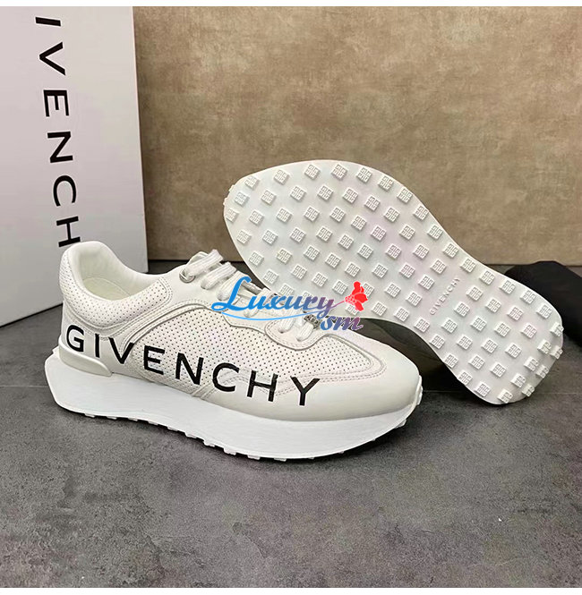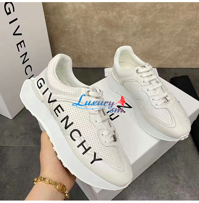 GIVENCHY-BH005CH 지방시 화이트 퍼포레이티드 가죽 GIV 러너 스니커즈 남성용