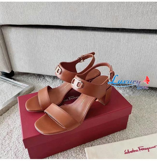 Ferragamo-01C094 페라가모 브라운 카프스킨 간치니 샌들