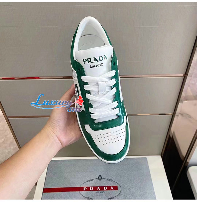 PRADA-2EE364 프라다 그린 다운타운 가죽 스니커즈