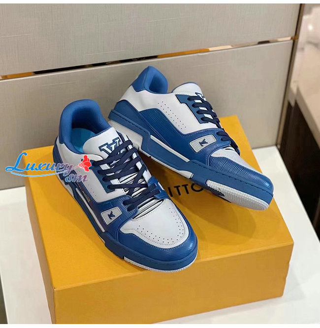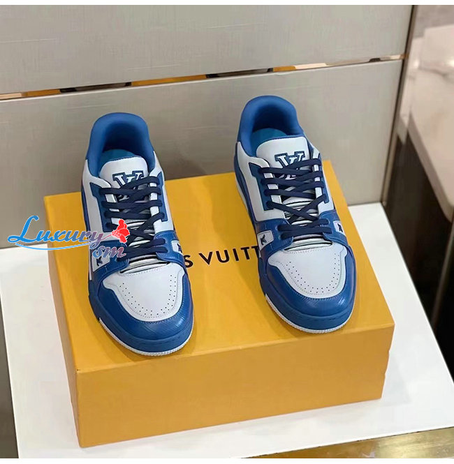LOUIS VUITTON-1A8AGO 루이비통 블루/화이트 송아지 가죽 LV 트레이너 스니커즈