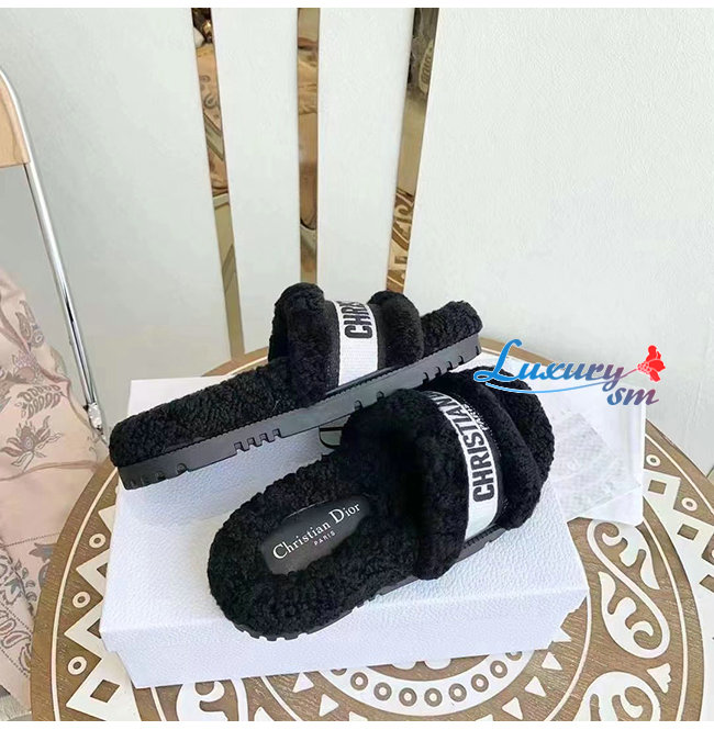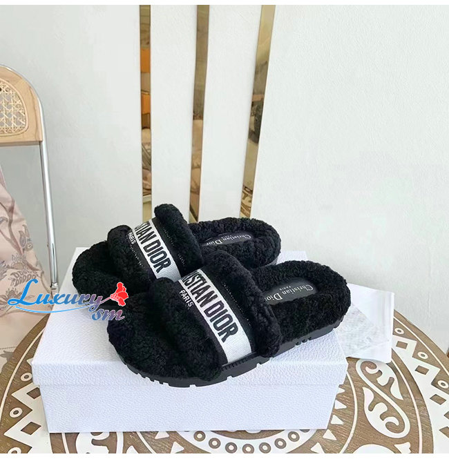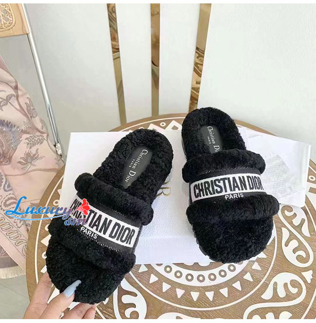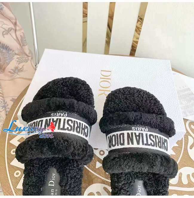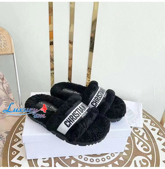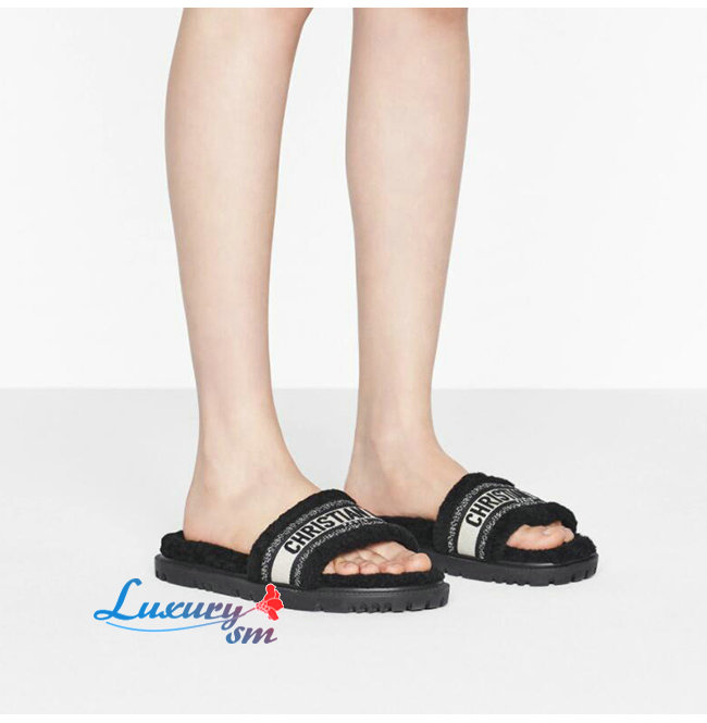 DIOR-KCQ551 디올 블랙 시어링 DWAY 뮬 여성용