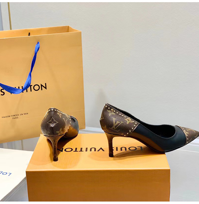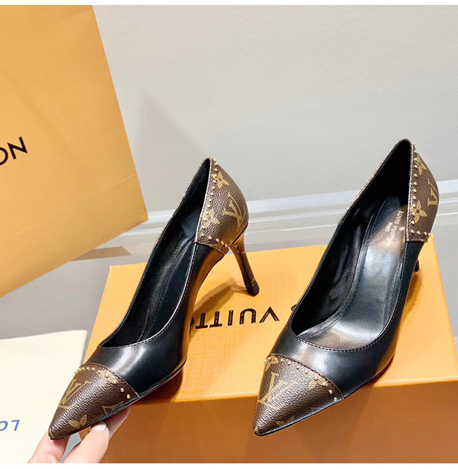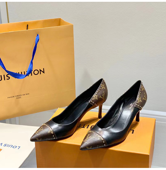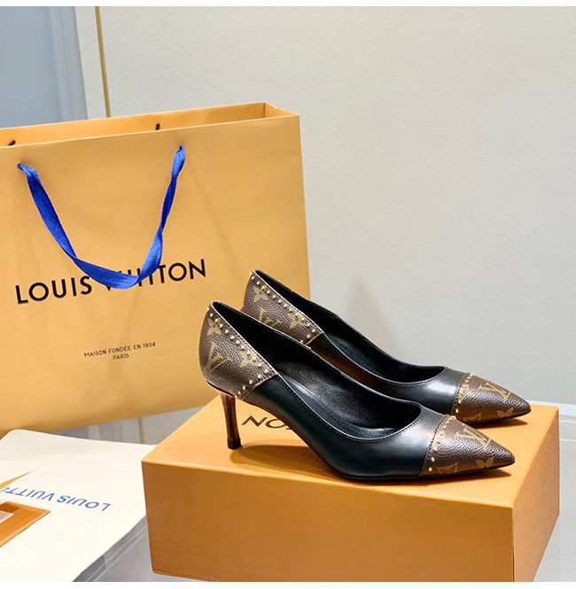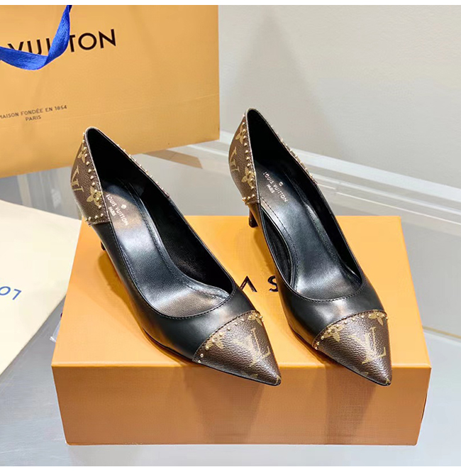 LOUIS VUITTON-루이비통 블랙 모노그램 스터드 장식 펌프스
