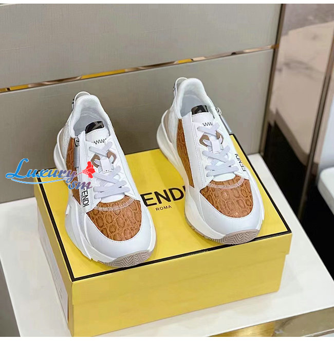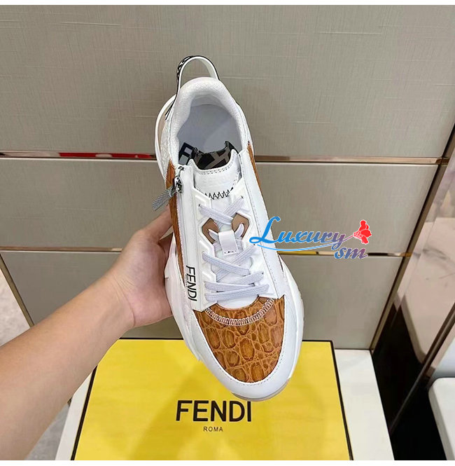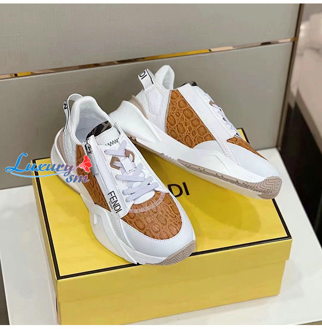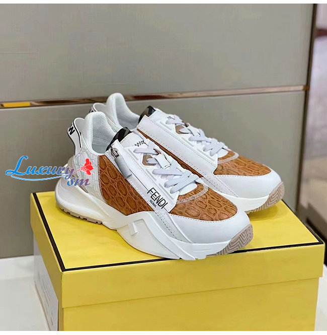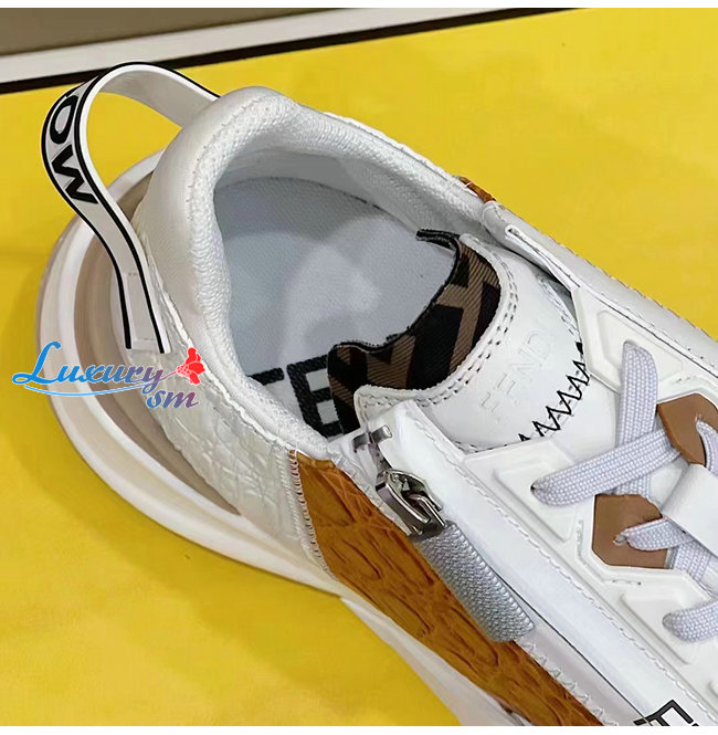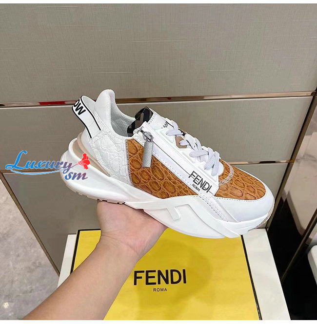 FENDI-7E1453 펜디 화이트/브라운 펜디 플로우 스니커즈 남성용