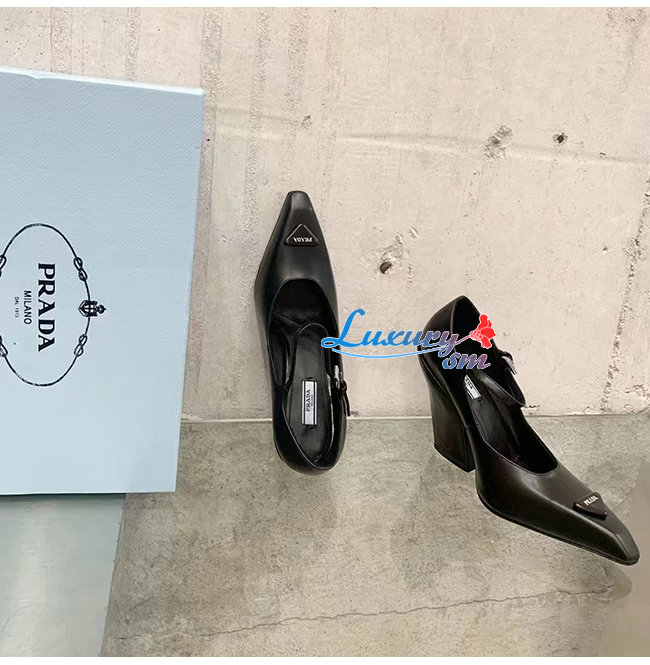 PRADA-1I982M 프라다 블랙 브러시드 가죽 펌프스