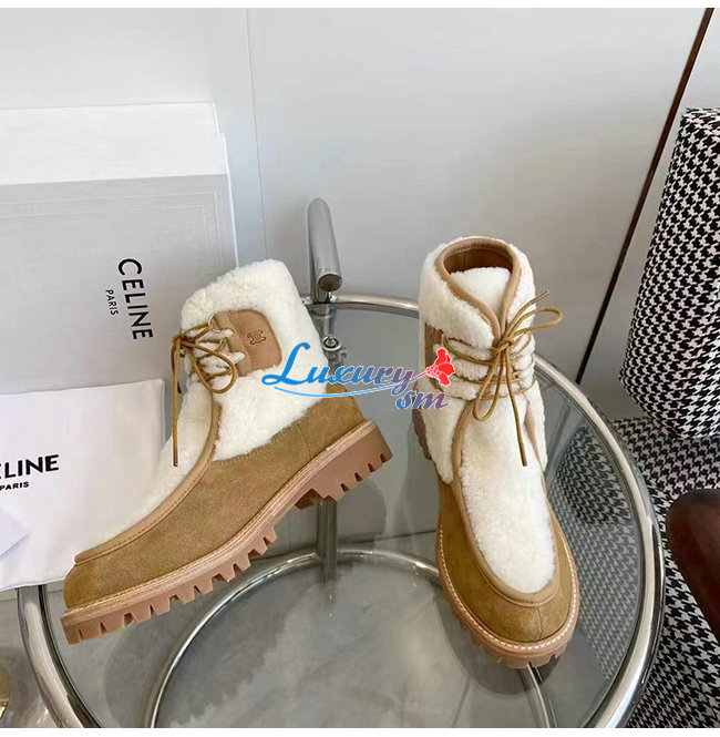 CELINE-345133 셀린느 브라운 스웨이드 가죽 레이스업 부츠 여성용