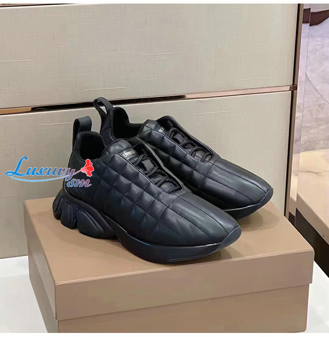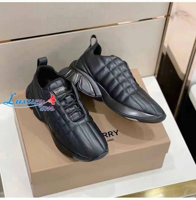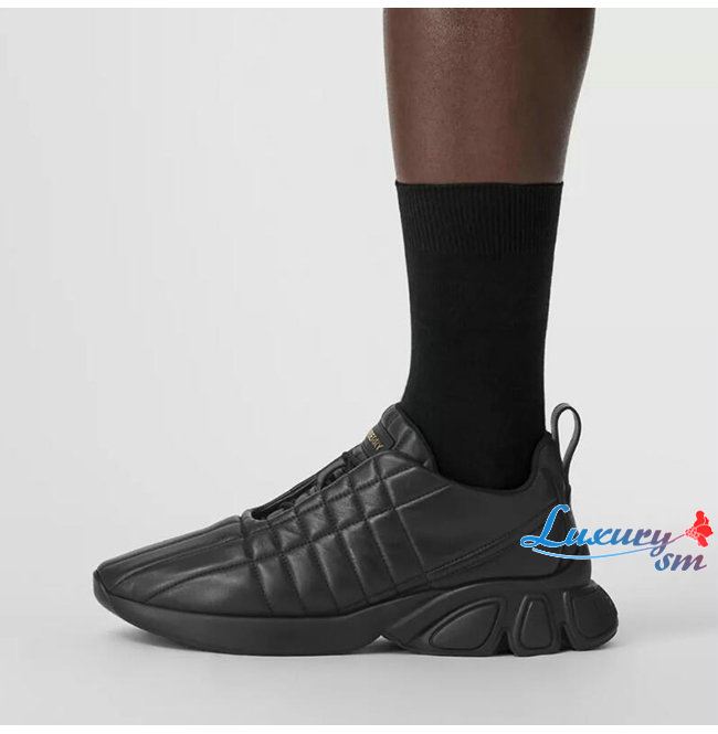 BURBERRY-80569521 버버리 블랙 퀼팅 레더 클래식 스니커즈