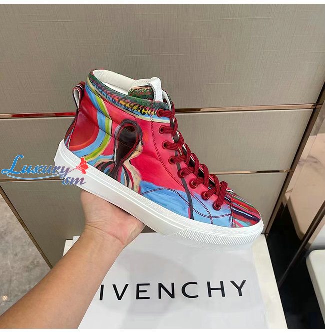 GIVENCHY-BH005LH1 지방시 레드 리퍼 프린트 가죽 시티 하이탑 스니커즈 남성용