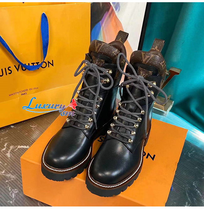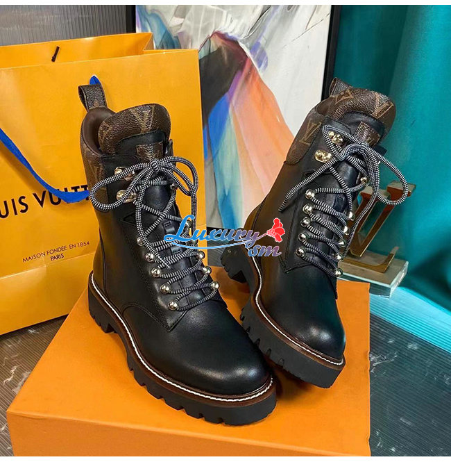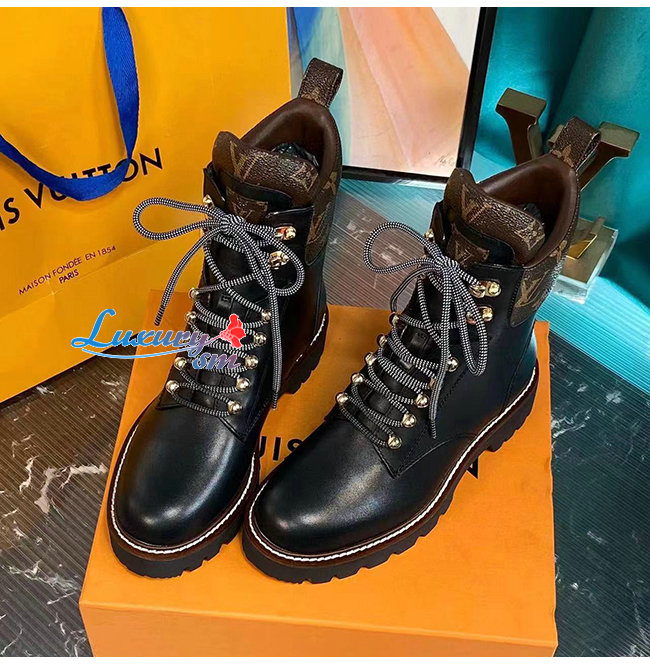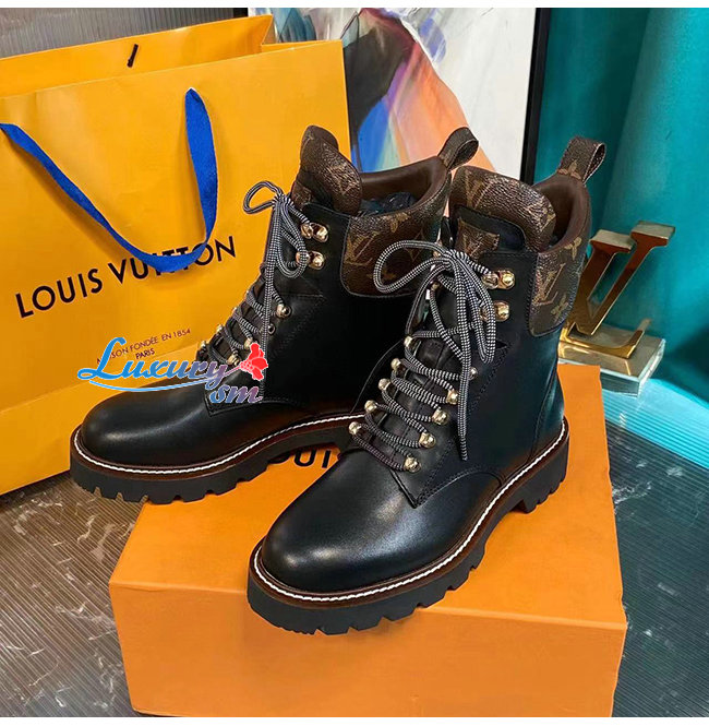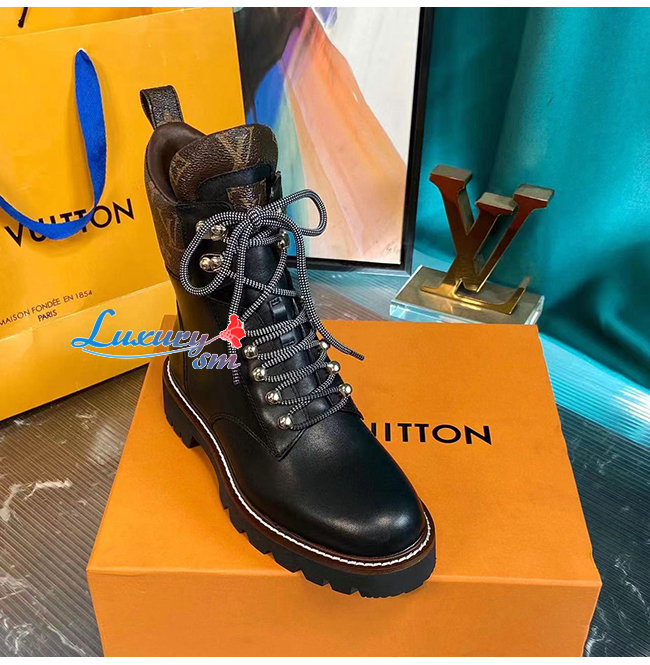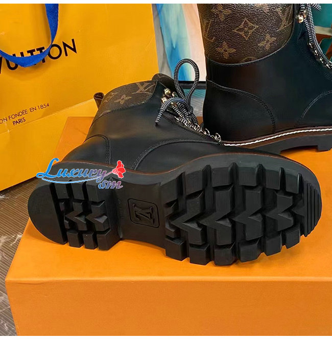 LOUIS VUITTON-루이비통 블랙 카프스킨 모노그램 앵클 부츠