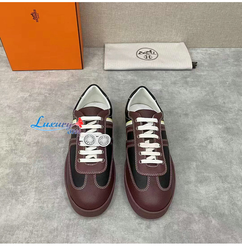 HERMES-H211861 에르메스 블랙/버건디 카프스킨 부메랑 스니커즈